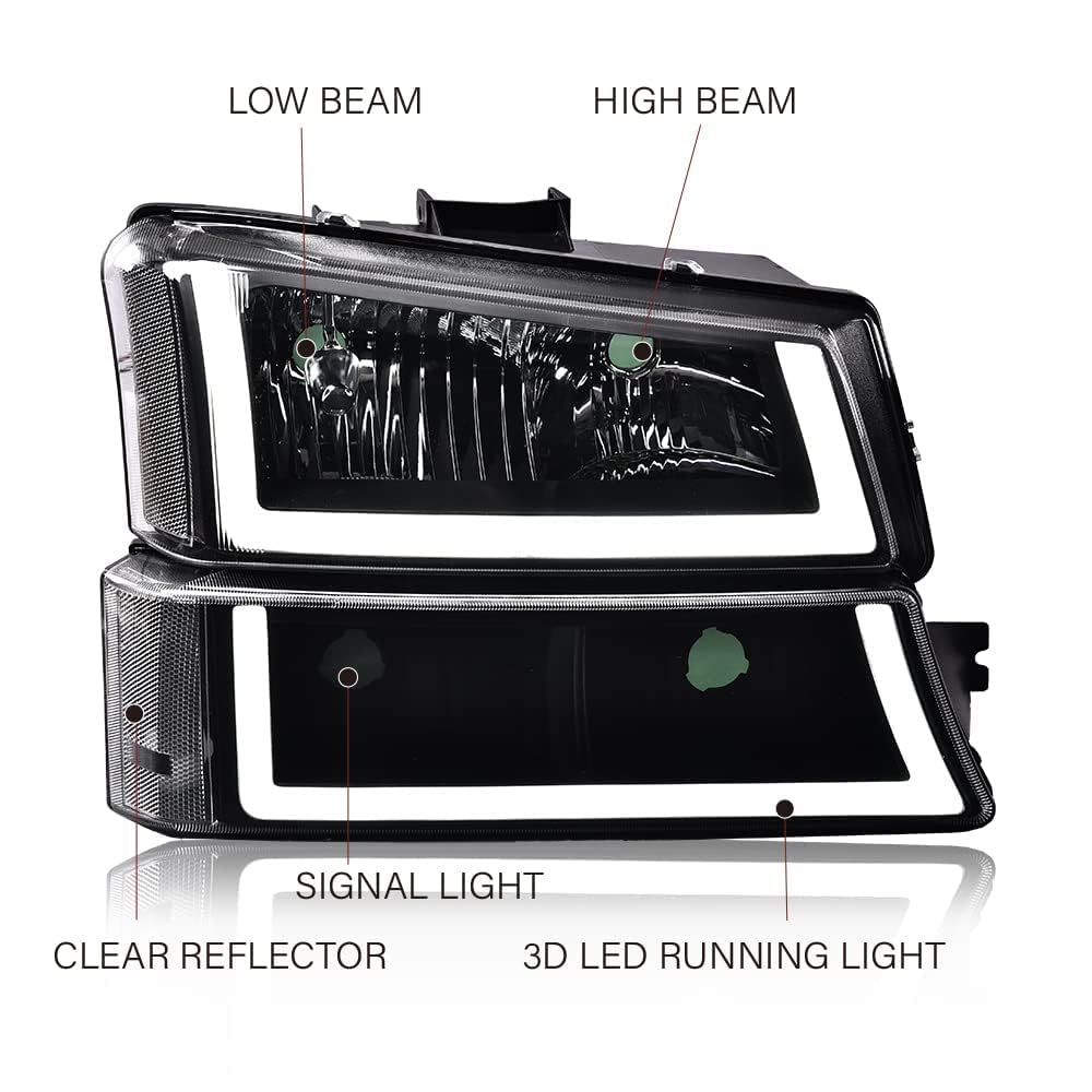 G-Plus Led Drl Headlights, Compatible With 2003-2006 Chevy Avalanche 1500 2500/Silverado 1500 2500 3500 & Hd Models Headlamp, Dr