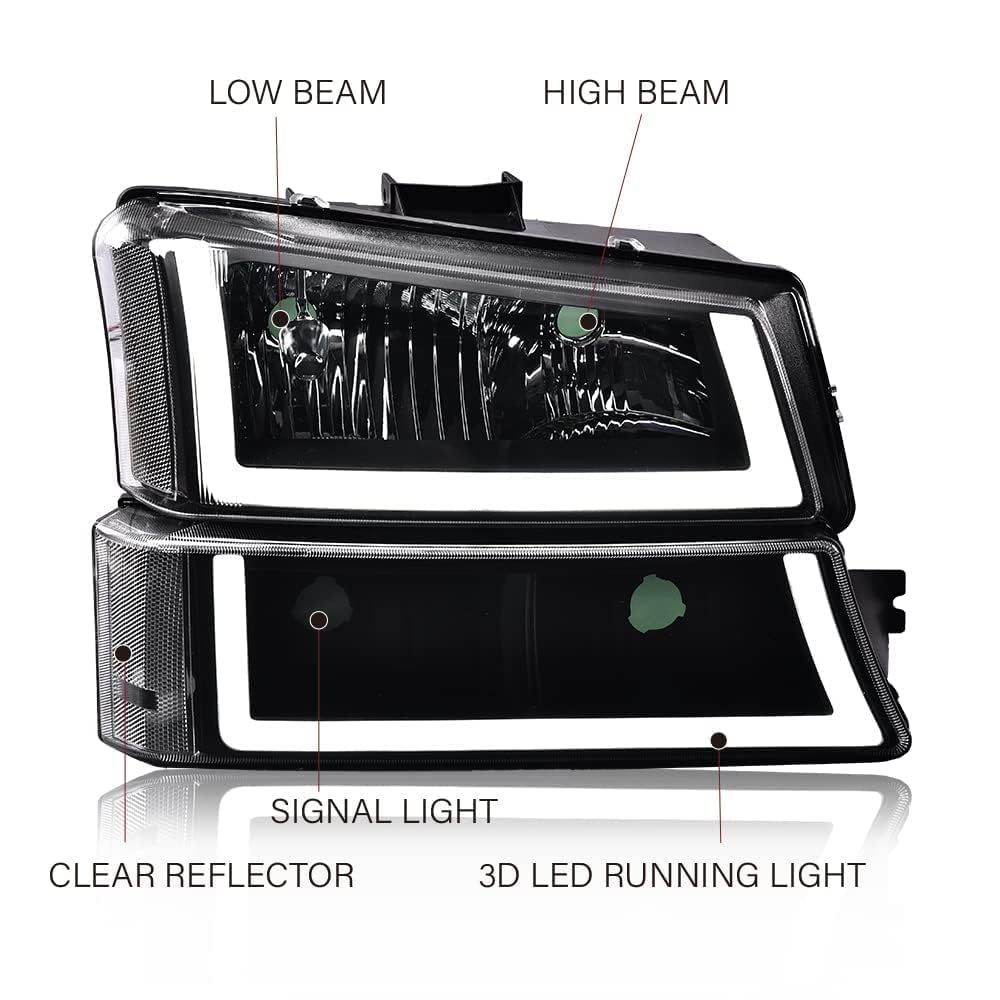 G-Plus Led Headlights W/O Bulbs, Compatible With Chevy Silverado Avalanche 2003 2004 2005 2006 Left & Right Clear Lens Black Hou