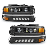 Led Headlights Assembly With Hi/Low Beam Turn Signal Lights Bulbs Compatible With 1999-2002 Chevy Silverado 1500 2500 3500, 2000
