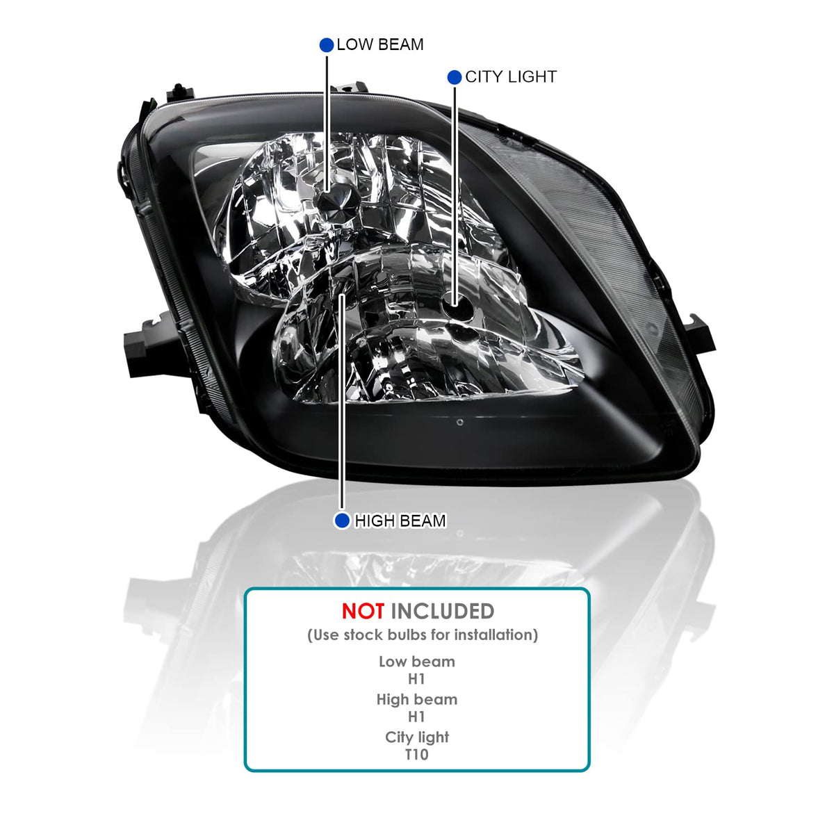 Spec-D Tuning Black Bezel Headlights Compatible With 1997-2001 Honda Prelude L+R Pair Head Light Lamp Assembly