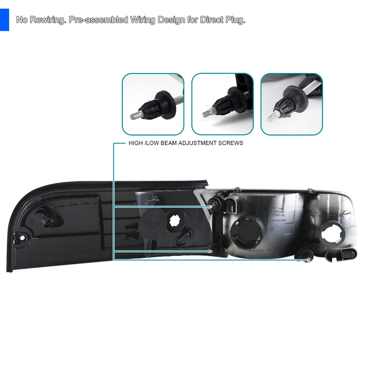 Q: Are the headlights easy to install?A: Yes, installation is straightforward as these headlights are a direct replacement for your original lights, requiring little to no modifications.