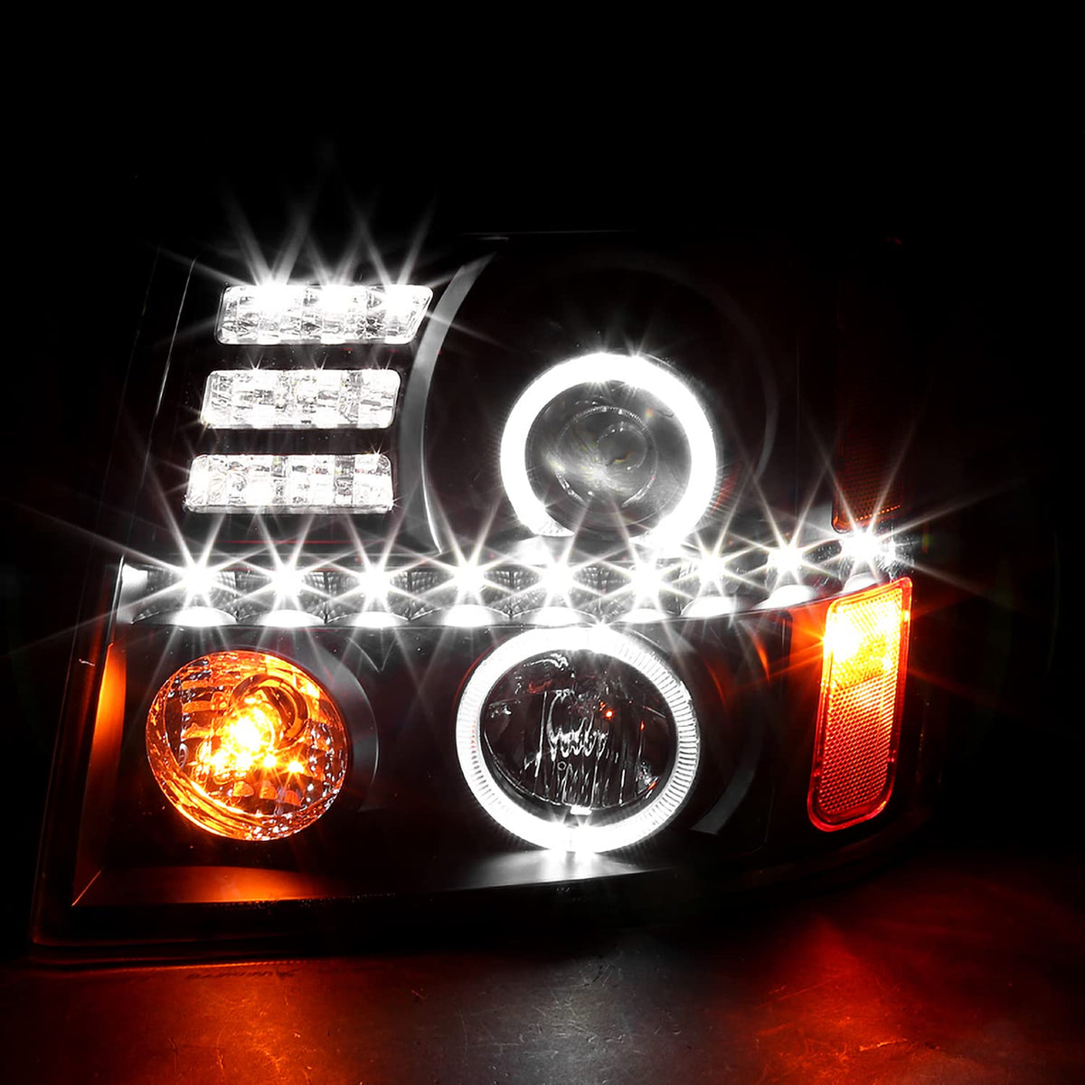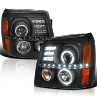 Spec-D Tuning Led Dual Halo Headlights Black Compatible With 2002-2006 Cadillac Escalade All, Left + Right Pair Headlamps Assembly