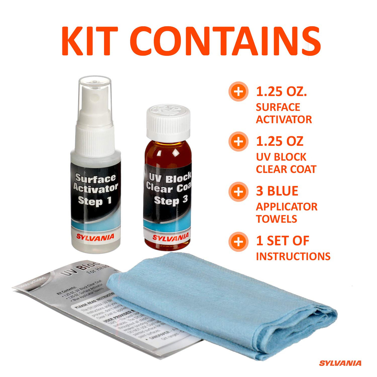 SYLVANIA Headlight Restoration Kit - UV Block Clear Coat, Surface Activator for Clearer Headlights - 1 Fl Oz