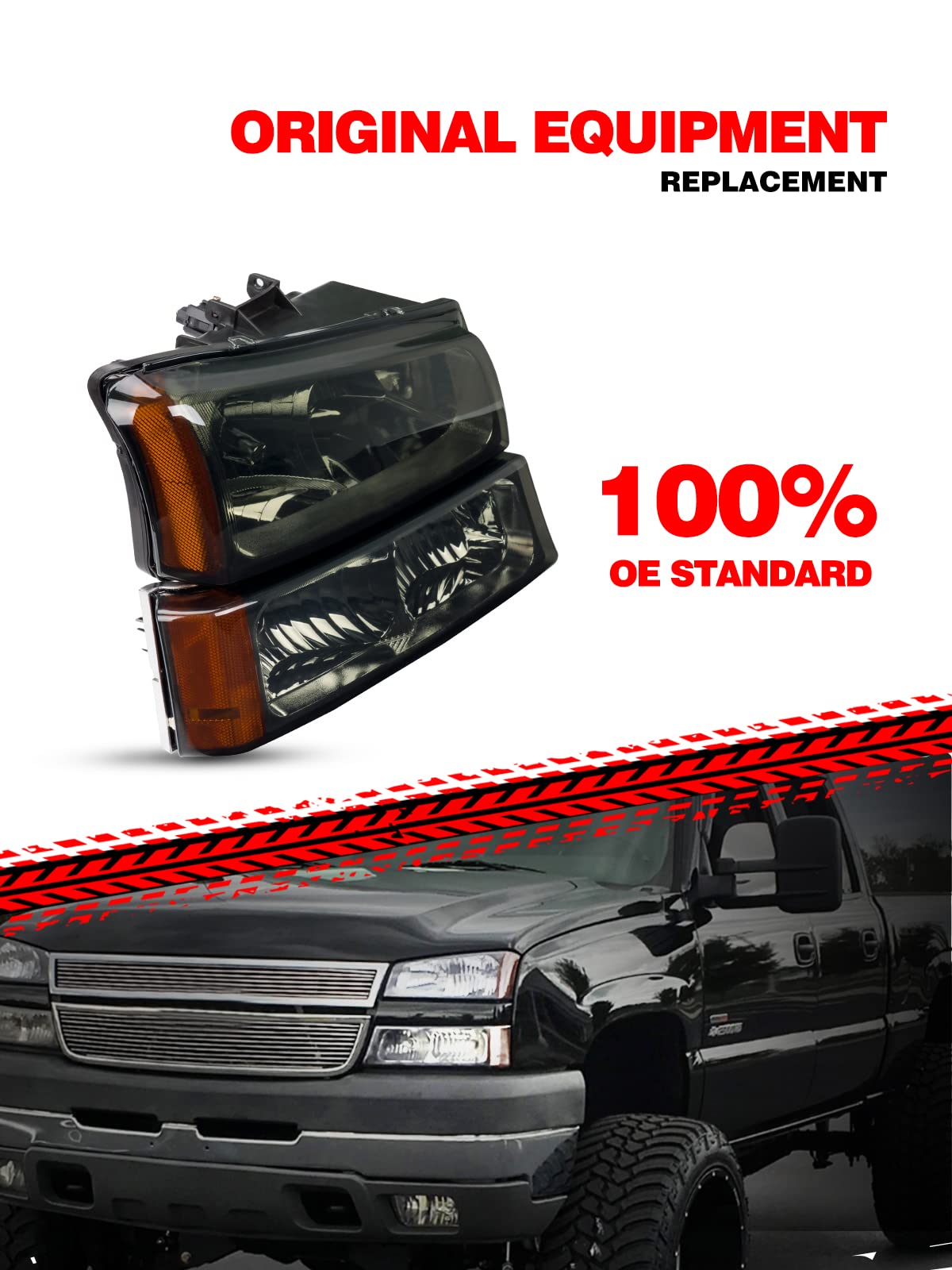 Torchbeam Silverado Headlights Assembly Pair For 2003-2006 Chevy Silverado/Avalanche 1500Hd/2500Hd/3500 Replacement Headlight Set Chrome Amber Reflector Smoke Lens Headlight Housing