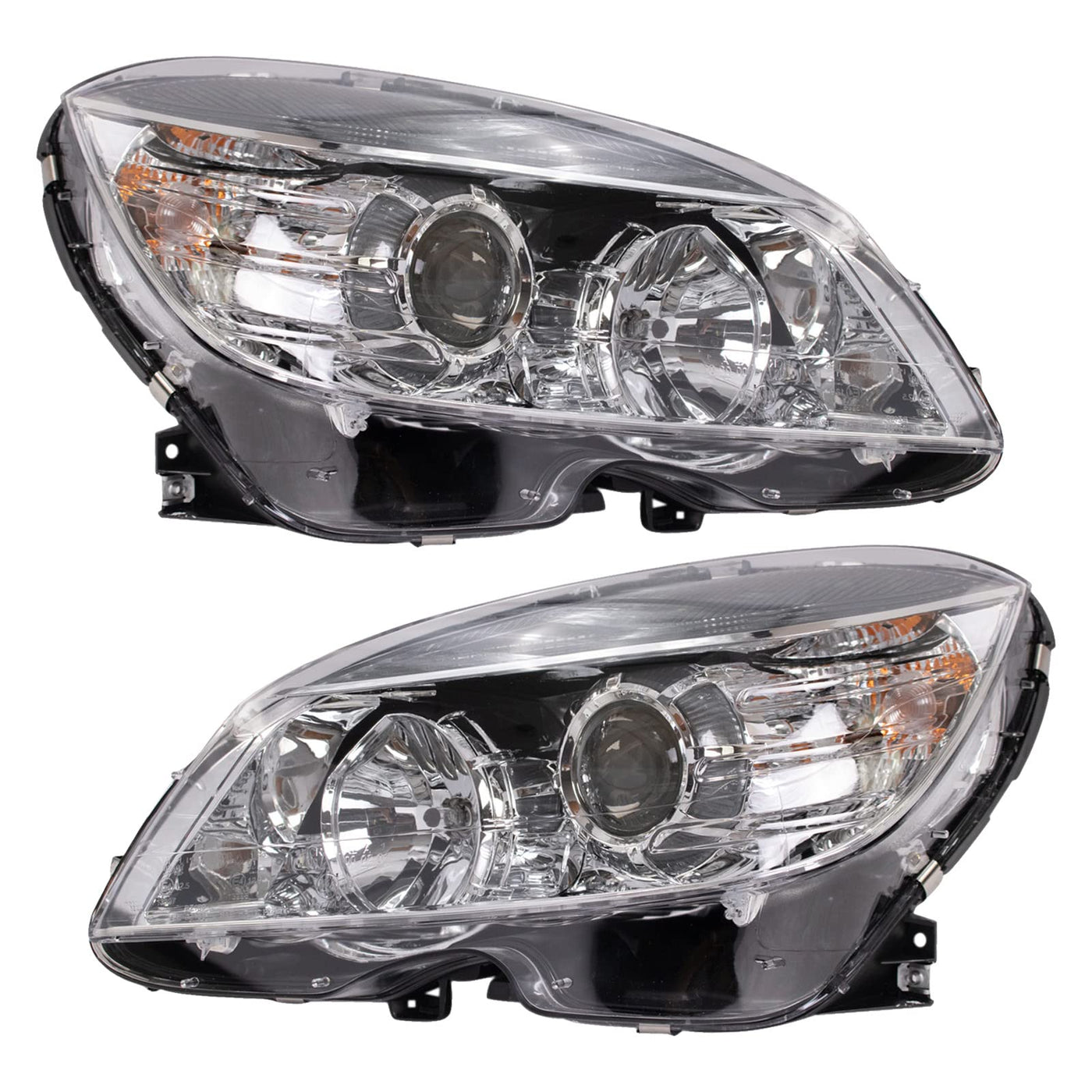 2 Piece Headlight SetKit Includes(1) Driver Side Headlight Assembly(1) Passenger Side Headlight AssemblyFitmentCompatible with: 2008-11 Mercedes Benz C300 with Halogen Headlights Driver & Passenger SideCompatible with: 2008-11 Mercedes Benz C350 with Halogen Headlights Driver & Passenger SideCompatible with: 2009-11 Mercedes Benz C63 AMG with Halogen Headlights Driver & Passenger SideCompatible with: 2008 Mercedes Benz C63 AMG From 2/09/07 Production Date with Halogen Headlights Driver & Passenger SideProduct AttributesHeadlight Type: AssemblyLens Material: PC (Polycarbonate)Grade Type: Standard ReplacementQuantity: 2 PieceItem DetailsProduct Features Direct Fit - No vehicle or wiring modification necessary DOT, SAE, and FMVSS Compliant - Meets on-road use regulations Matching set for a restored lookReference NumbersMercedes-Benz: 204-906-55-03, 204-906-56-03, 2049065503, 204906550380, 2049065603, 204906560380Partslink Numbering System: MB2502162, MB2502163, MB2503162, MB2503163