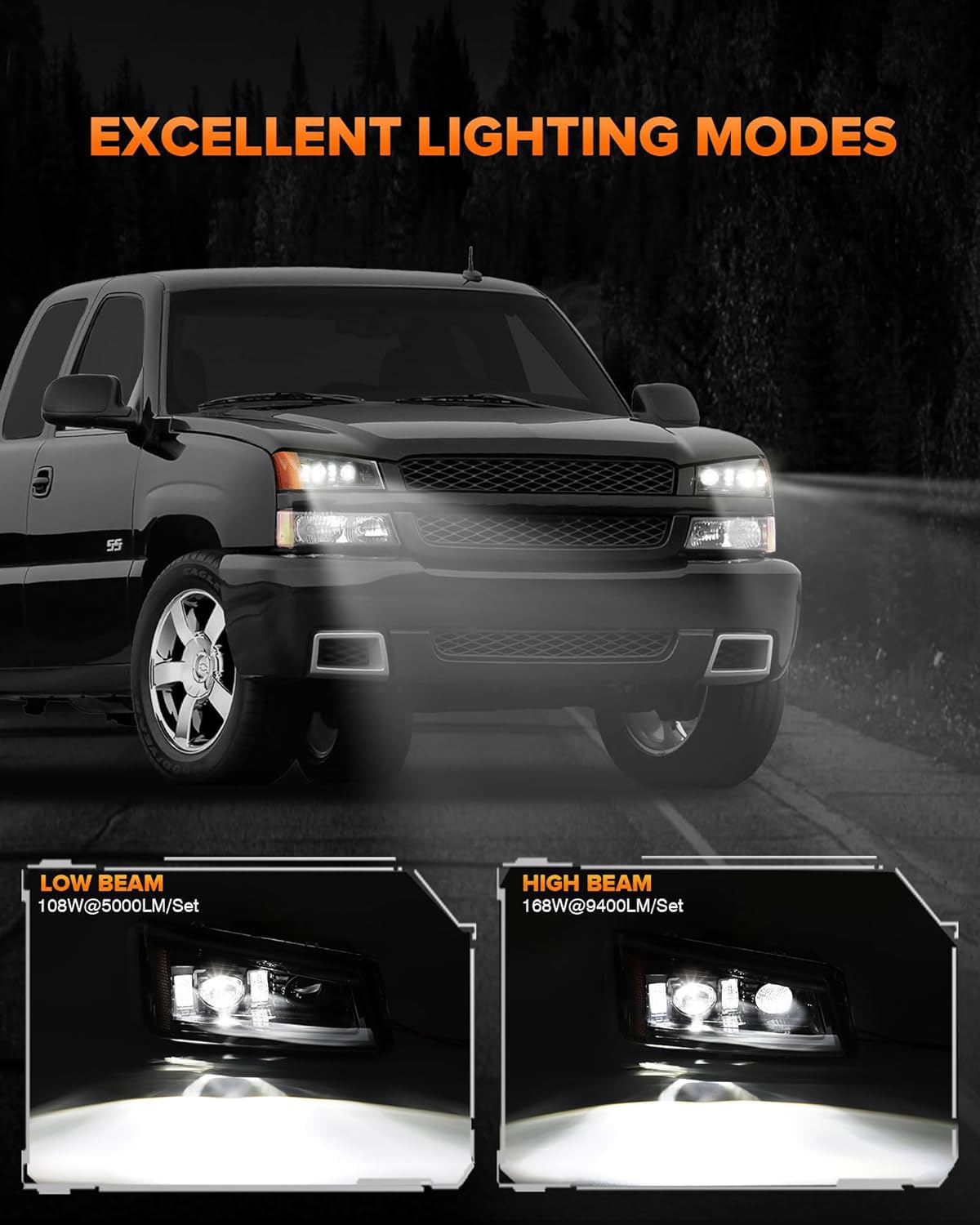 Z-Offroad Led Headlights Assembly Dot Approved Hi/Low Sealed Beam Compatible With 03-06 Chevy Silverado Avalanche, 2Pcs (No Drl)
