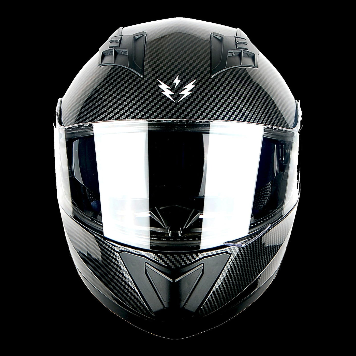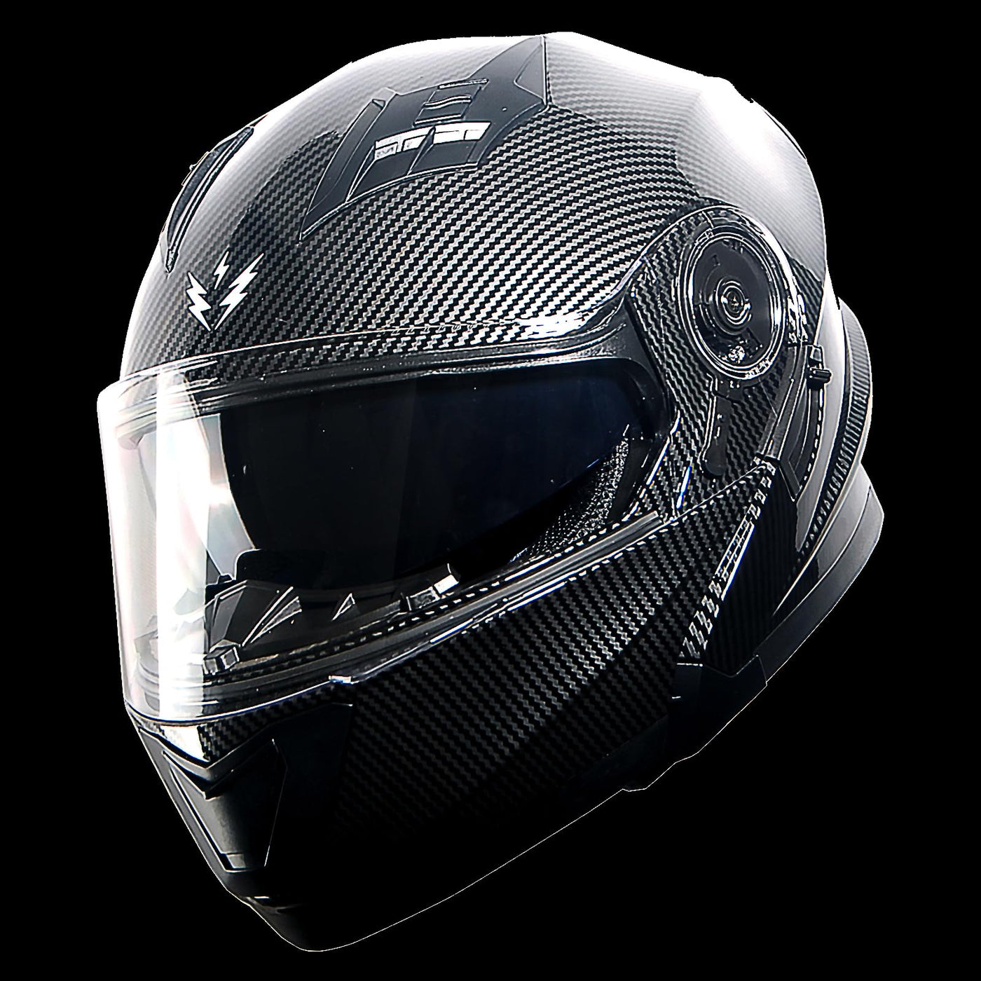 1Storm New Motorcycle Bike Modular Full Face Helmet Dual Visor Sun Shield: Carbon Fiber Black
