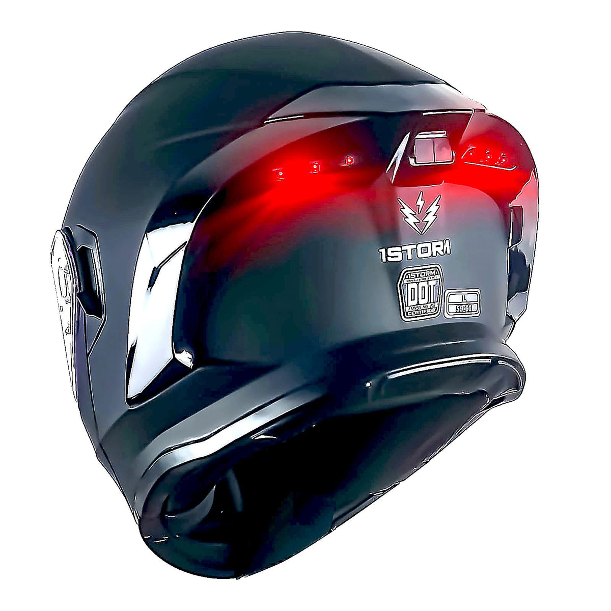 1Storm New Motorcycle Bike Modular Full Face Helmet Dual Visor Sun Shield With Rechargeable Led Tail Light: Matt Black