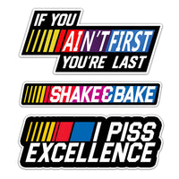 3 PCs Shake and Bake If You Ain't First You're Last Racing Quote Sticker for Bike Car Truck Motorbike Helmet 6 Inches