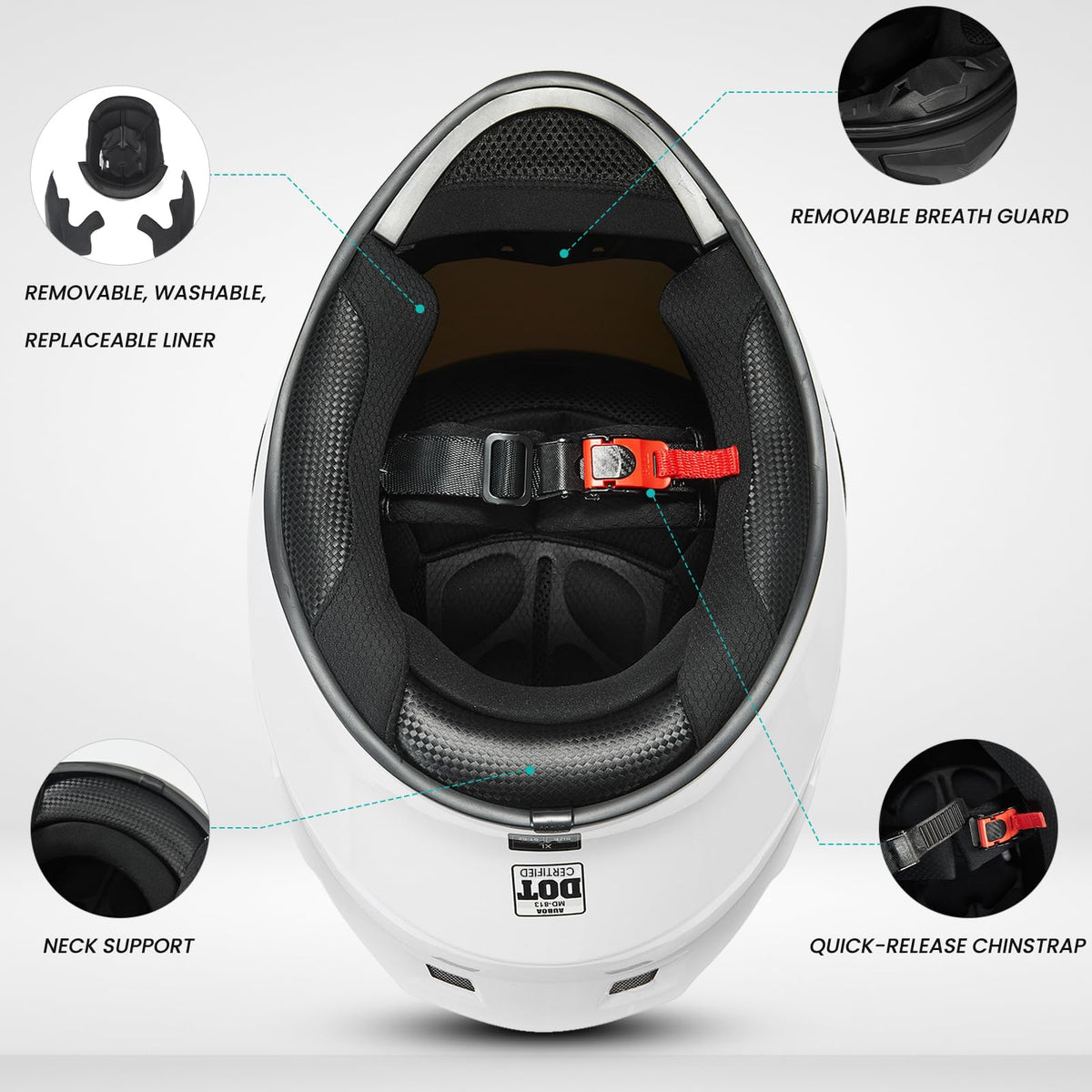 Auboa Full Face Motorcycle Helmets For Adults Men And Women Dot Street Bike Racing Helmet With Tinted Visor Model Md-813 (White,