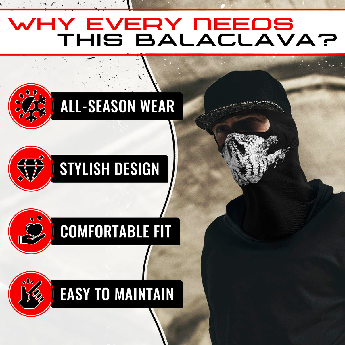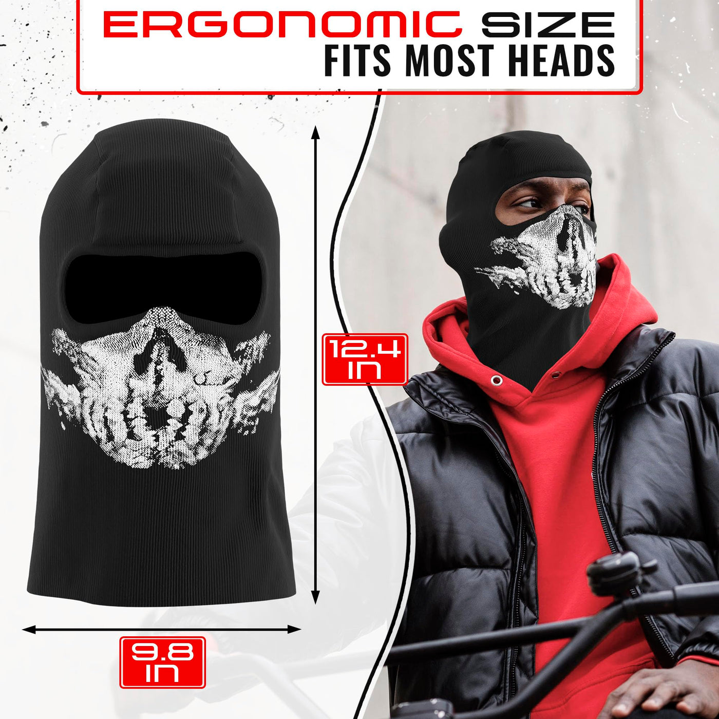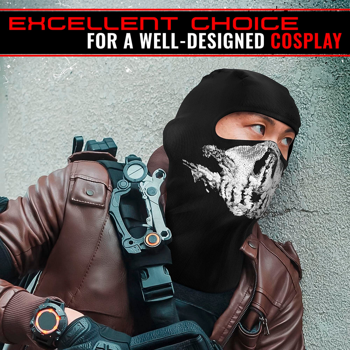 Balaclava Ghost Mask - Breathable & Stretchy Skull Face Mask With Wind Protection - Under Helmet Wearing Skull Balaclava With Sc