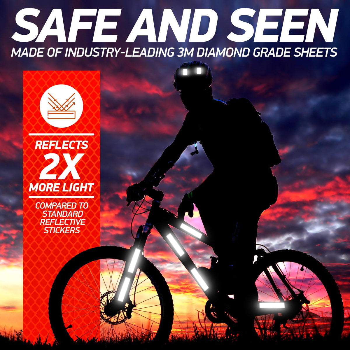 Q: What are the dimensions of the Byllstore Reflective Stickers?A: Each sticker measures 1.25 inches by 6 inches, making them ideal for a variety of uses, including marking hazards on helmets, mailboxes, and vehicles.