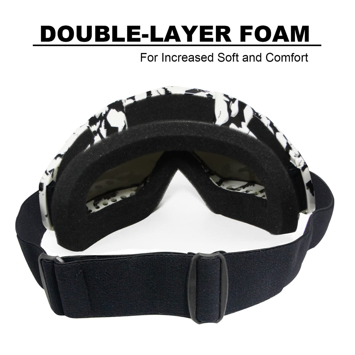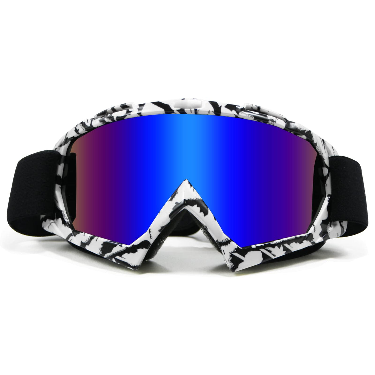 Feature: 1. The moto goggles with high-quality PC color-plated lenses resist impact, eliminate wind and sand, perfect protection for your safe and healthy eyes. 2. The dirtbike goggles' inner is made of high quality multiple layer foams, which is soft, breathable, there are ventilation holes on the top and bottom for heat dissipation and anti fog. 3. The racing goggles with non-slip and elastic strap are adjustable which fit most of helmets and head size for women, men, youth, kids. 4. Wide inner space of riding goggles offer a clear broad vision when driving. 5. Multi-function utv goggles for motorcycle, motocross, atv, dirt bike, off road, riding, ski, cycling, climbing 6. The motorcycle goggles fit all age of Adult Youth, Men, Women, Girls, Boys,Kids