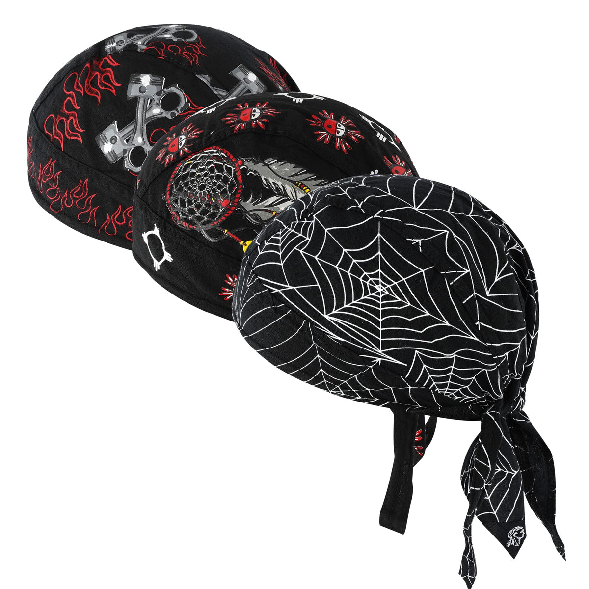 Docila Black Cotton Do Rags For Women Men Trendy Spider Feather Flame Skull Helmet Liner Beanie Hat Pirate Head Scarf Motorcycle
