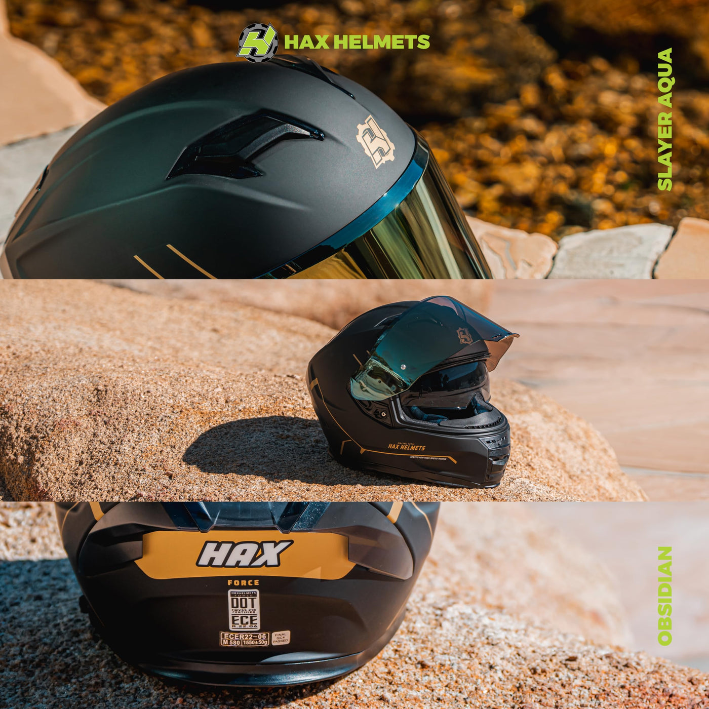 Q: What safety certifications does the HAX Force helmet have?A: The HAX Force helmet is certified by both DOT and ECE 22.06, ensuring it meets rigorous safety standards for maximum protection while riding.