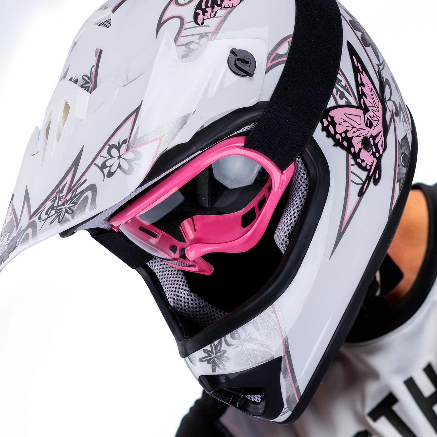 DOT Youth Kids Motocross Offroad Street Dirt Bike Helmet Youth Motorcycle ATV Helmet with Goggles Gloves Pink Butterfly M