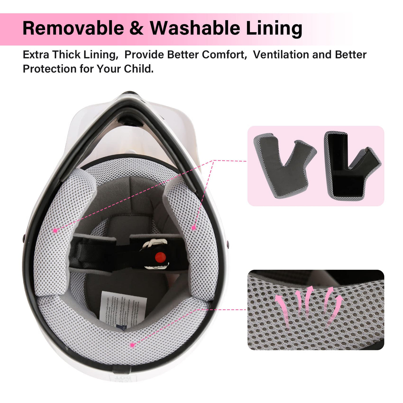 DOT Youth Kids Motocross Offroad Street Dirt Bike Helmet Youth Motorcycle ATV Helmet with Goggles Gloves Pink Butterfly S