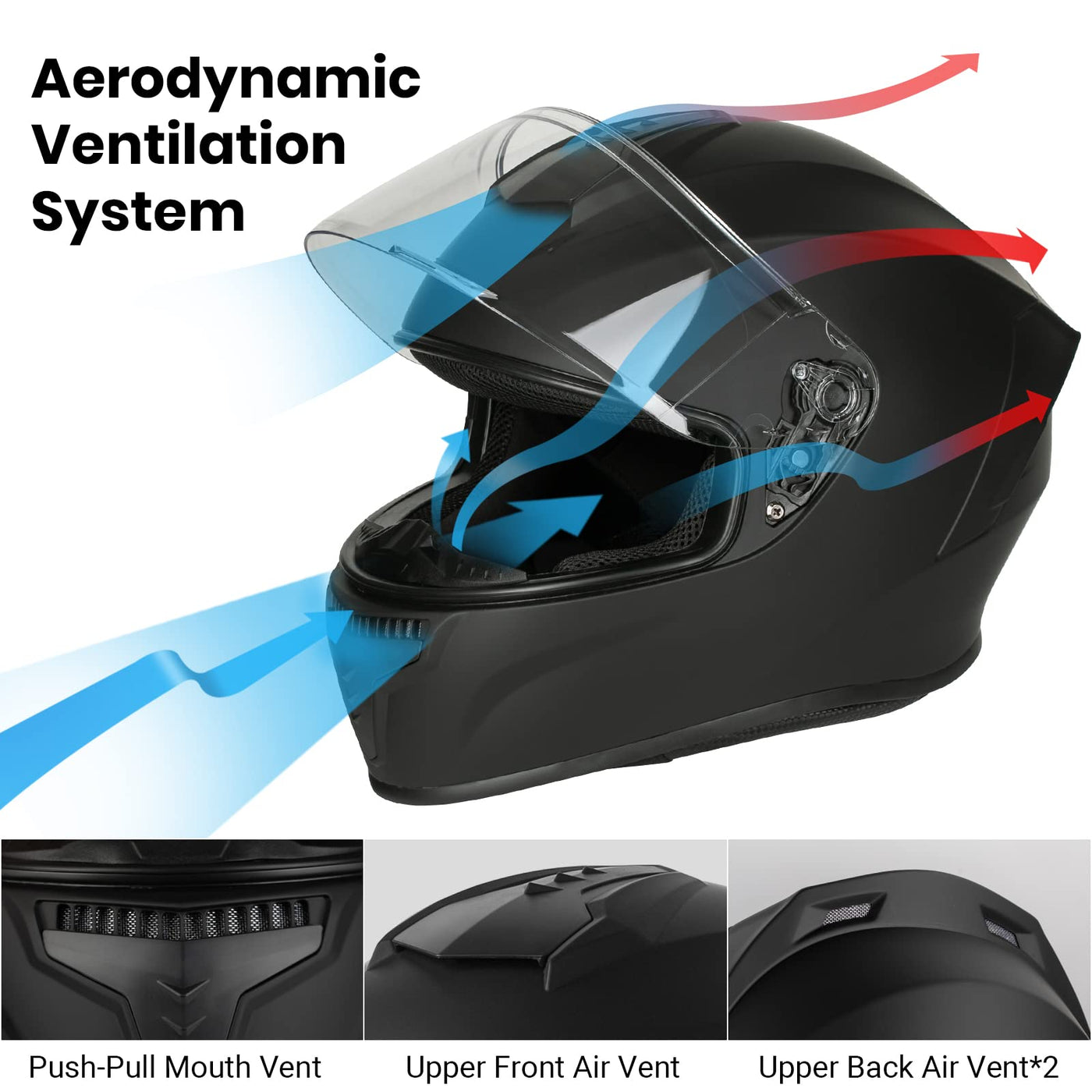 Q: How does the ventilation system work in this helmet?A: The helmet features aerodynamic ventilation with strategically positioned vents on the front, top, and back. You can easily control the airflow with one hand, allowing you to open or close the ventilation slits for a cooler ride.