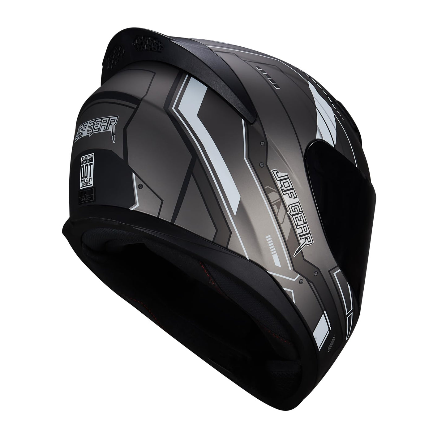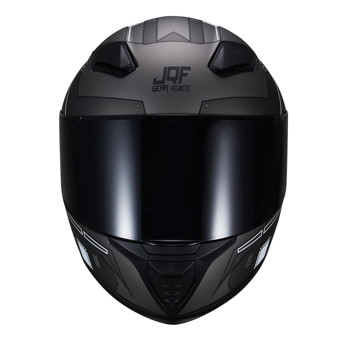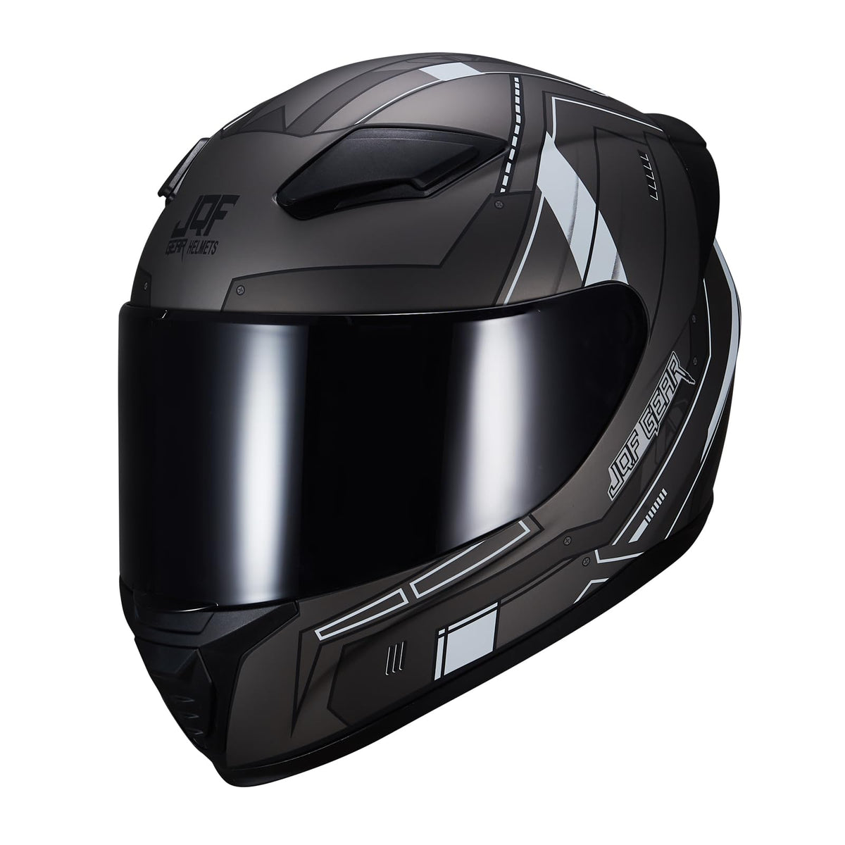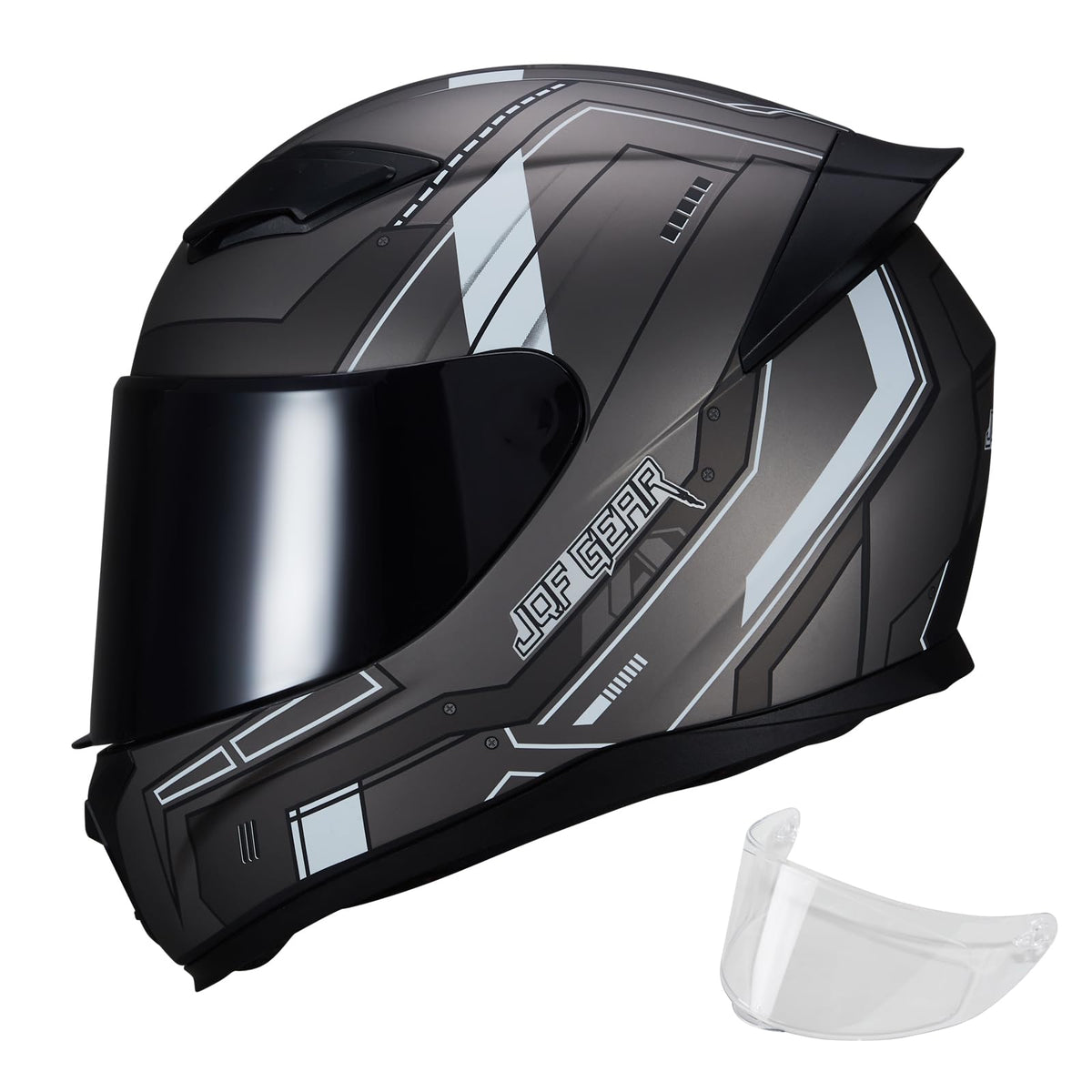 JQF Gear Full Face Helmet Black Motorcycle Motorbike Street Bike Racing Helmets for Adults WS-607 DOT Approved (Gray Mecha, M)