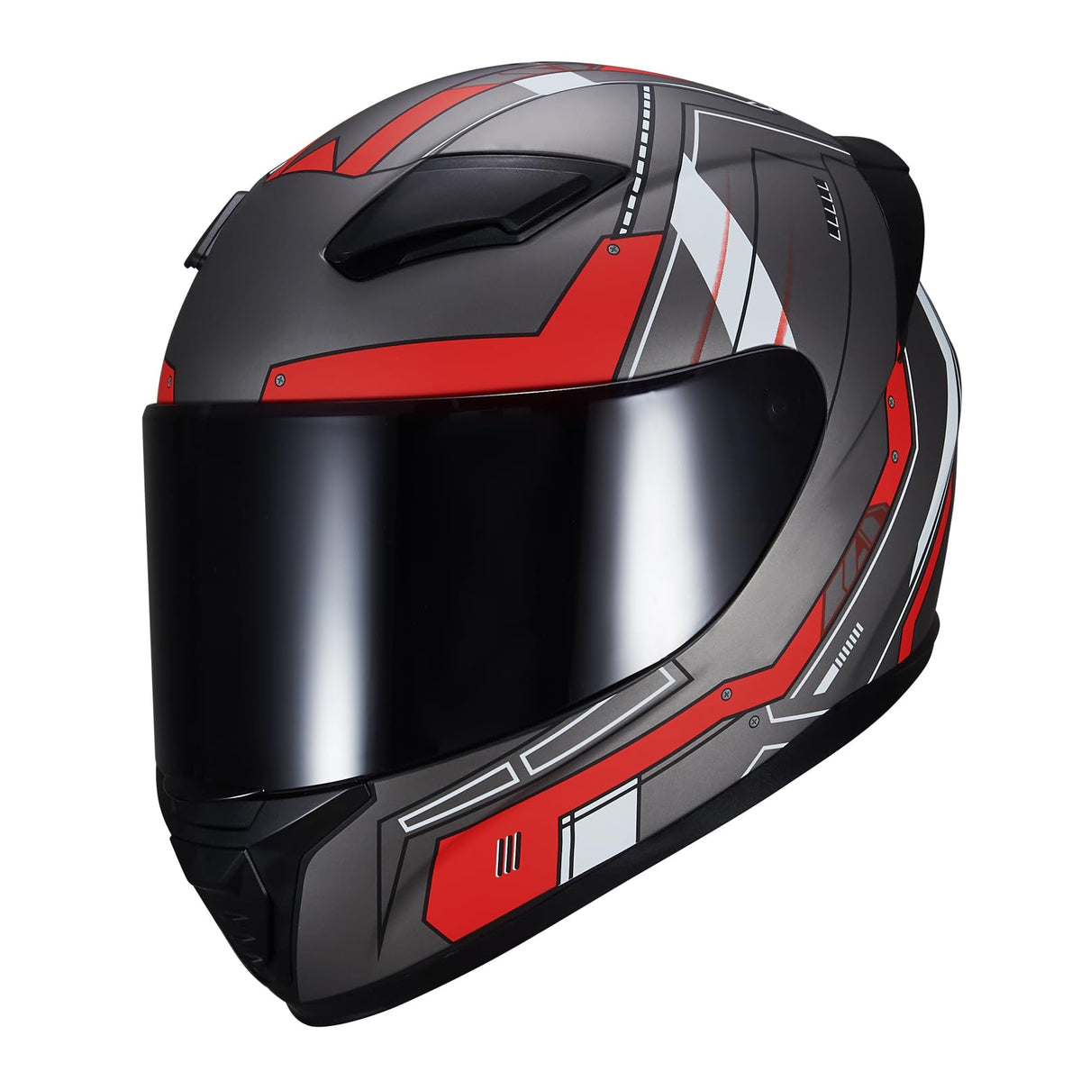 JQF Gear Full Face Helmet Black Motorcycle Motorbike Street Bike Racing Helmets for Adults WS-607 DOT Approved (Red Mecha, L)