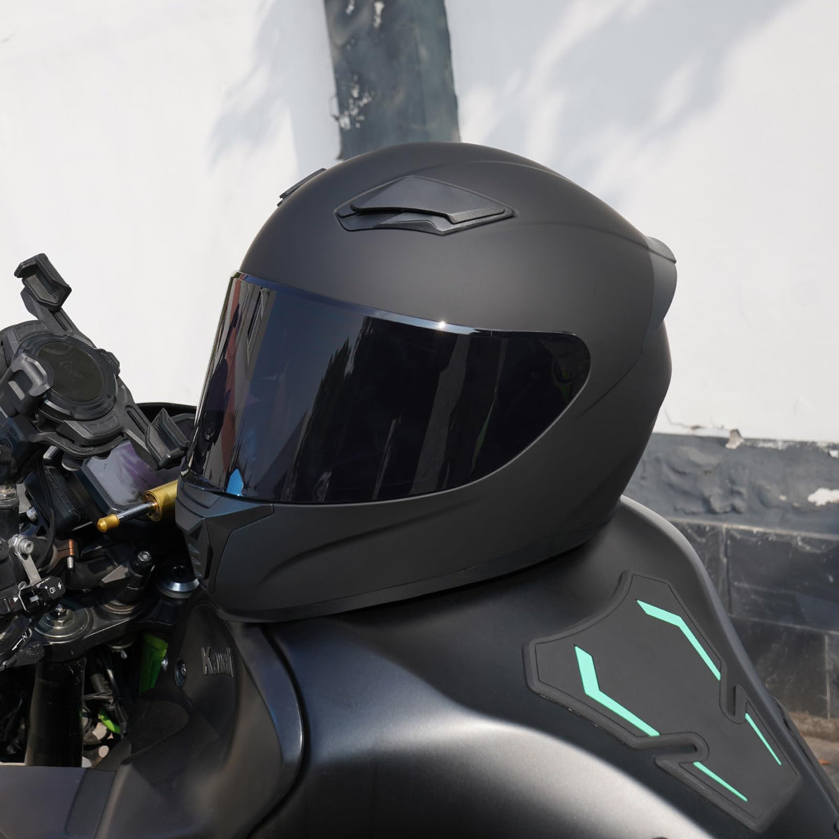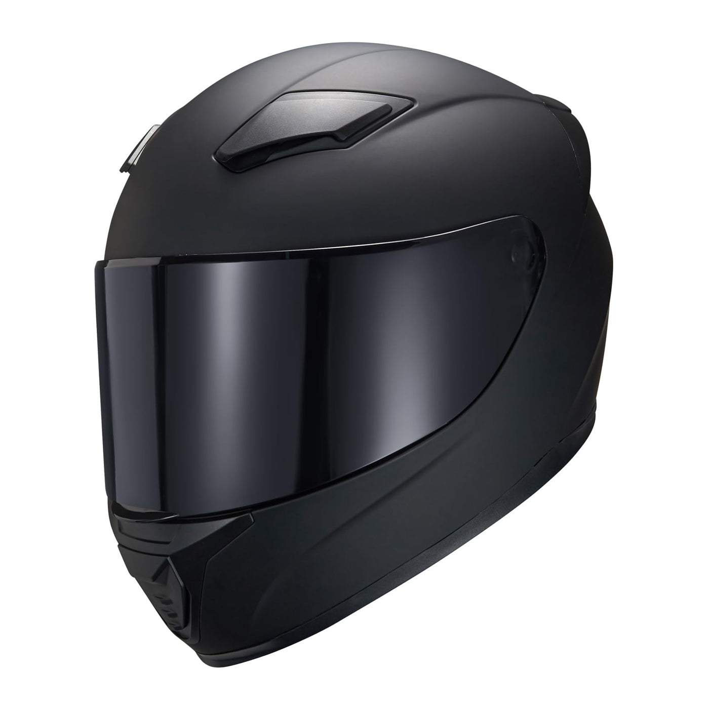 JQF Gear Full Face Helmet Black Motorcycle Motorbike Street Bike Racing Helmets for Adults WS-607 DOT Approved (with Black Visor