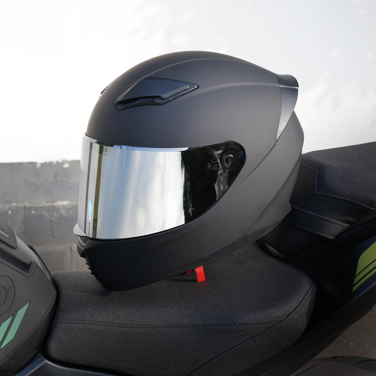 JQF Gear Full Face Helmet Black Motorcycle Motorbike Street Bike Racing Helmets for Adults WS-607 DOT Approved (with Chrome Silv