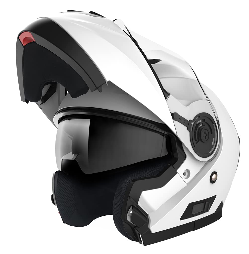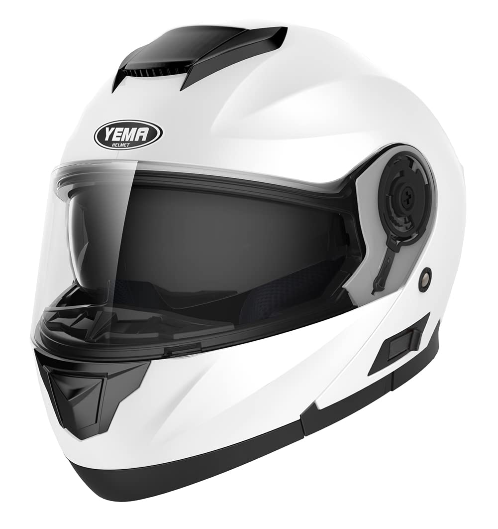Motorcycle Modular Full Face Helmet DOT Approved - YEMA YM-926 Motorbike Moped Street Bike Racing Crash Helmet with Sun Visor for Adult, Men and Women - White,X-Large