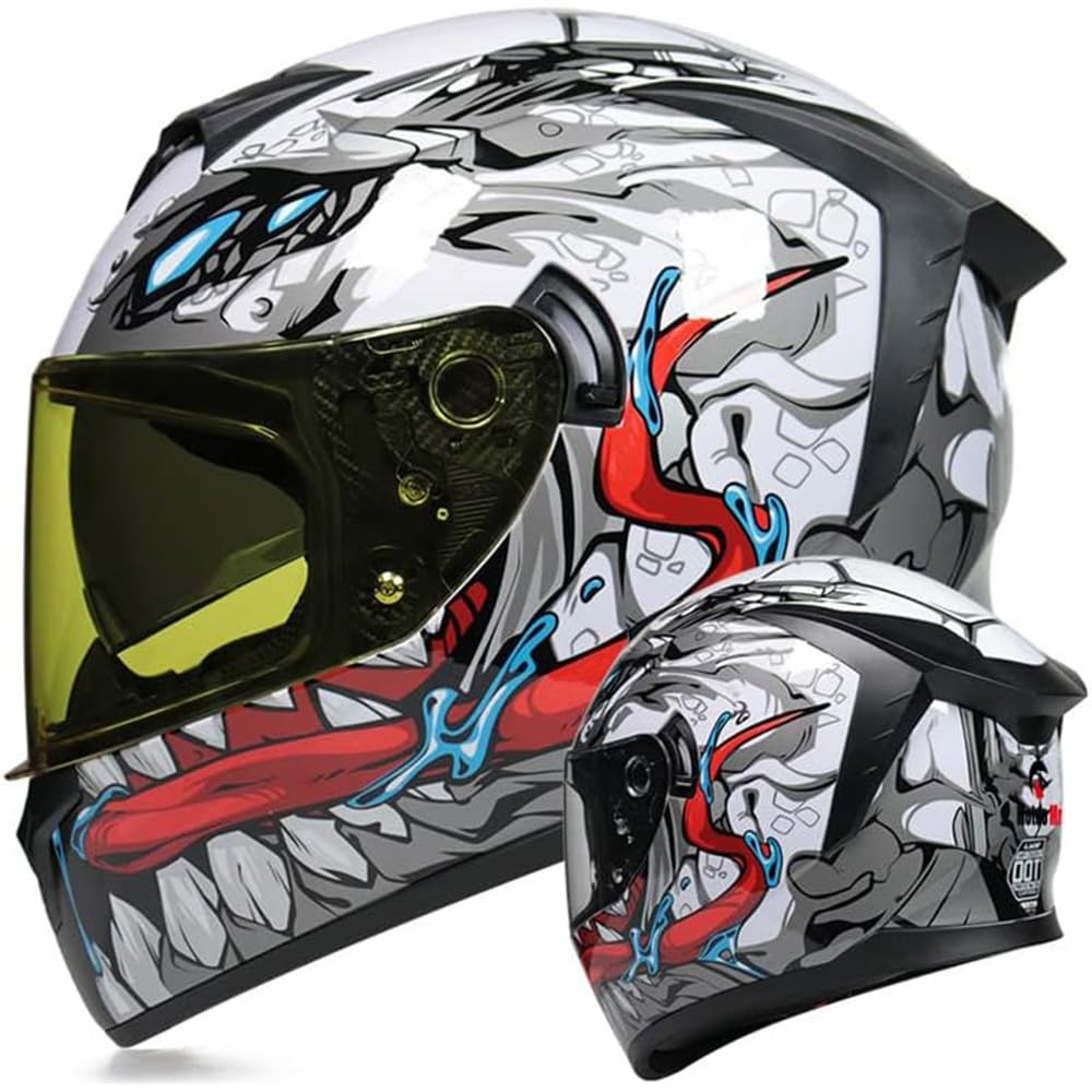 MotuoMr Unisex-Adult Full Face Motorcycle Helmet DOT Approved Motorbike Moped Street Bike Racing Crash Helmet with Graphic (Yell