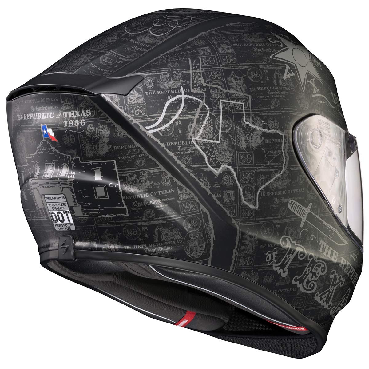 Scorpionexo R420 Full Face Motorcycle Helmet With Bluetooth Ready Speaker Pockets Dot Snell Lone Star (Black/Silver-3X)