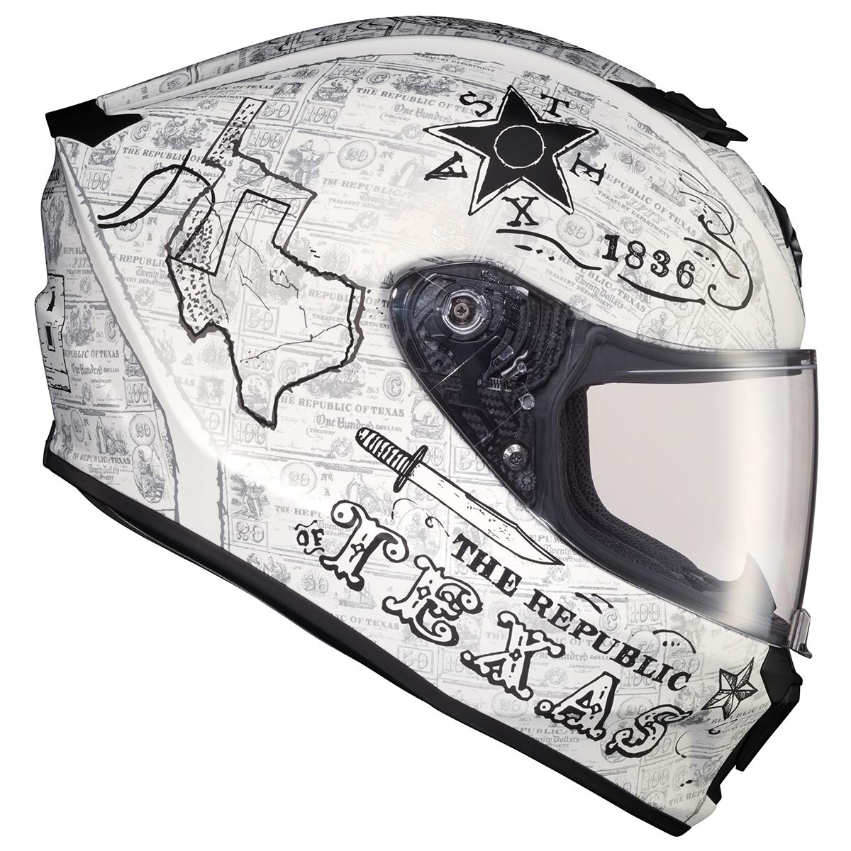 Scorpionexo R420 Full Face Motorcycle Helmet With Bluetooth Ready Speaker Pockets Dot Snell Lone Star (White/Silver-3X)