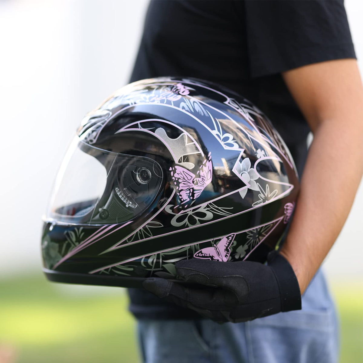 TCT-MOTORPARTS DOT Helmet Motorcycle Pink Black Butterfly Full Face Street Sport Helmet Full Face Flip Up Helmet for Women Men (