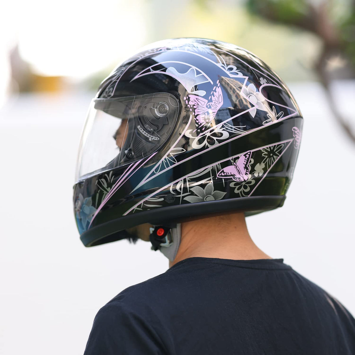 TCT-MOTORPARTS Full Face Helmet DOT Adult Pink Black Butterfly Motorcycle Motocross Flip Up Helmet for Women Men (Medium)