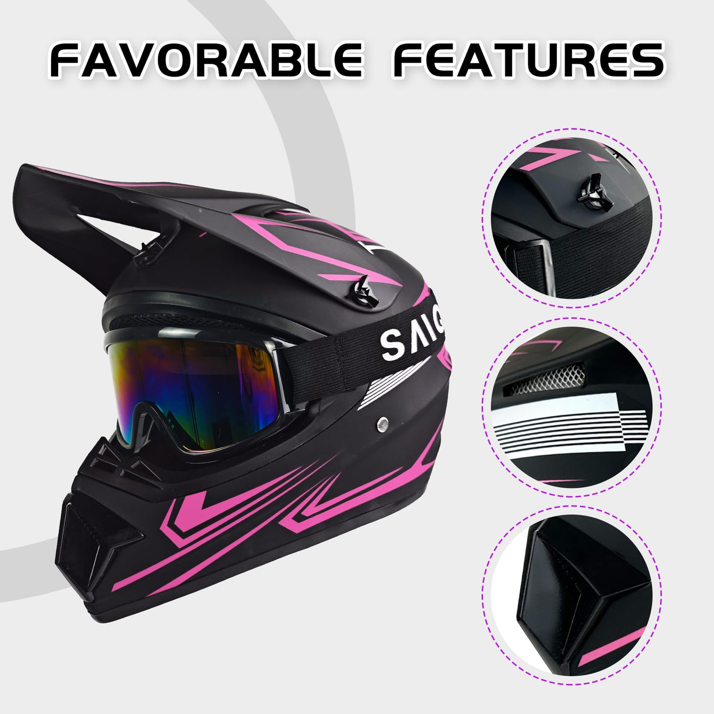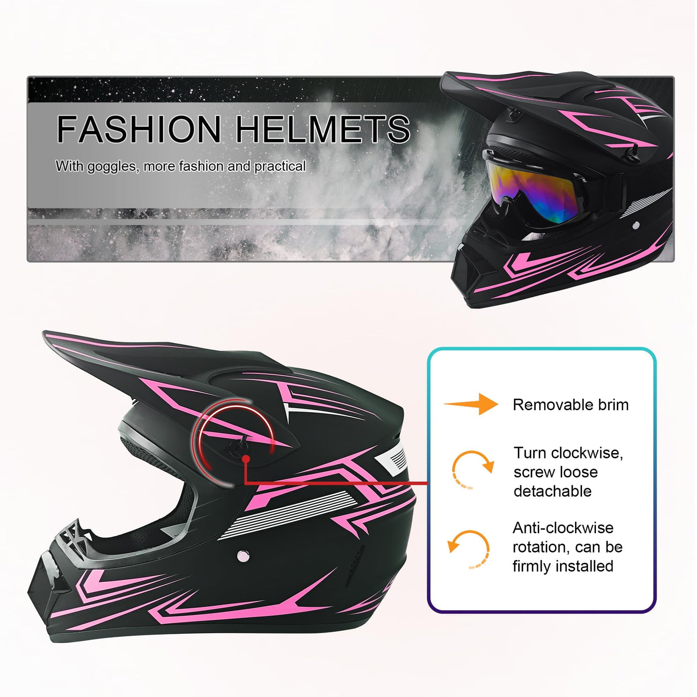TIANDU Adult Dirt Bike Motocross Helmets (Goggles Gloves Face Mask) 4PCS Set, Men Women Full Face Motorcycle Helmet Mountain Bik