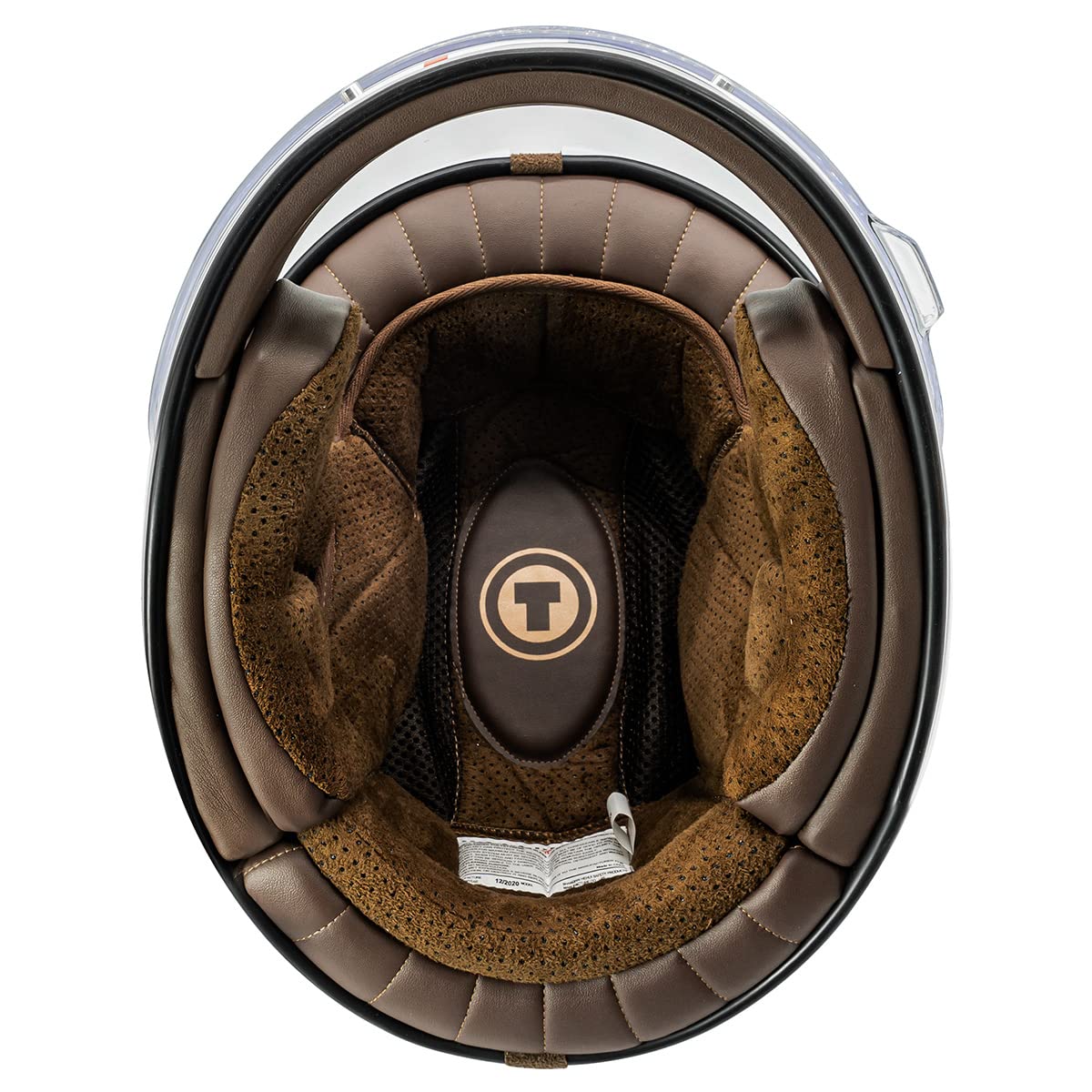 T1 Helmets run on the large side!!! | Fiberglass Tri-Composite Shell, Front Chin Vents with Metal Mesh Intake and Exhaust Vent | Removable Shield, Faux Suede Liner, Meet Federal Motor Vehicle Safety Standard (FMVSS) 218 | Padded Chin Strap with D-Ring Closure, Multi-Density EPS | Anti-Fog & Anti-Scratch Shield, Certified DOT & ECE 22.5