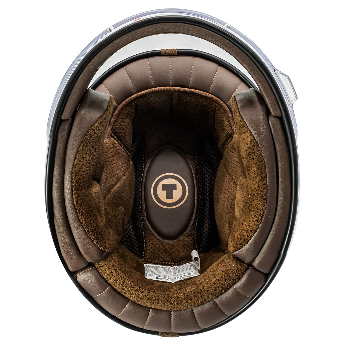 T1 Helmets run on the large side!!! | Fiberglass Tri-Composite Shell, Front Chin Vents with Metal Mesh Intake and Exhaust Vent | Removable Shield, Faux Suede Liner, Meet Federal Motor Vehicle Safety Standard (FMVSS) 218 | Padded Chin Strap with D-Ring Closure, Multi-Density EPS | Anti-Fog & Anti-Scratch Shield, Certified DOT & ECE 22.5