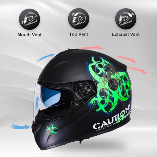 TRIANGLE Full Face Motorcycle Helmet Dual Visor Biohazard Street Bike Helmets for Men DOT Approved(Medium,Matte Green)