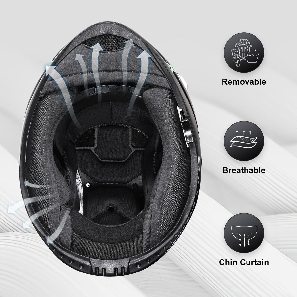 Q: How do I clean and maintain the helmet's interior?A: The helmet includes a fully removable and washable liner, making it easy to clean and maintain. Simply remove the inner padding, wash it as per the instructions, and reinsert it for a fresh fit.