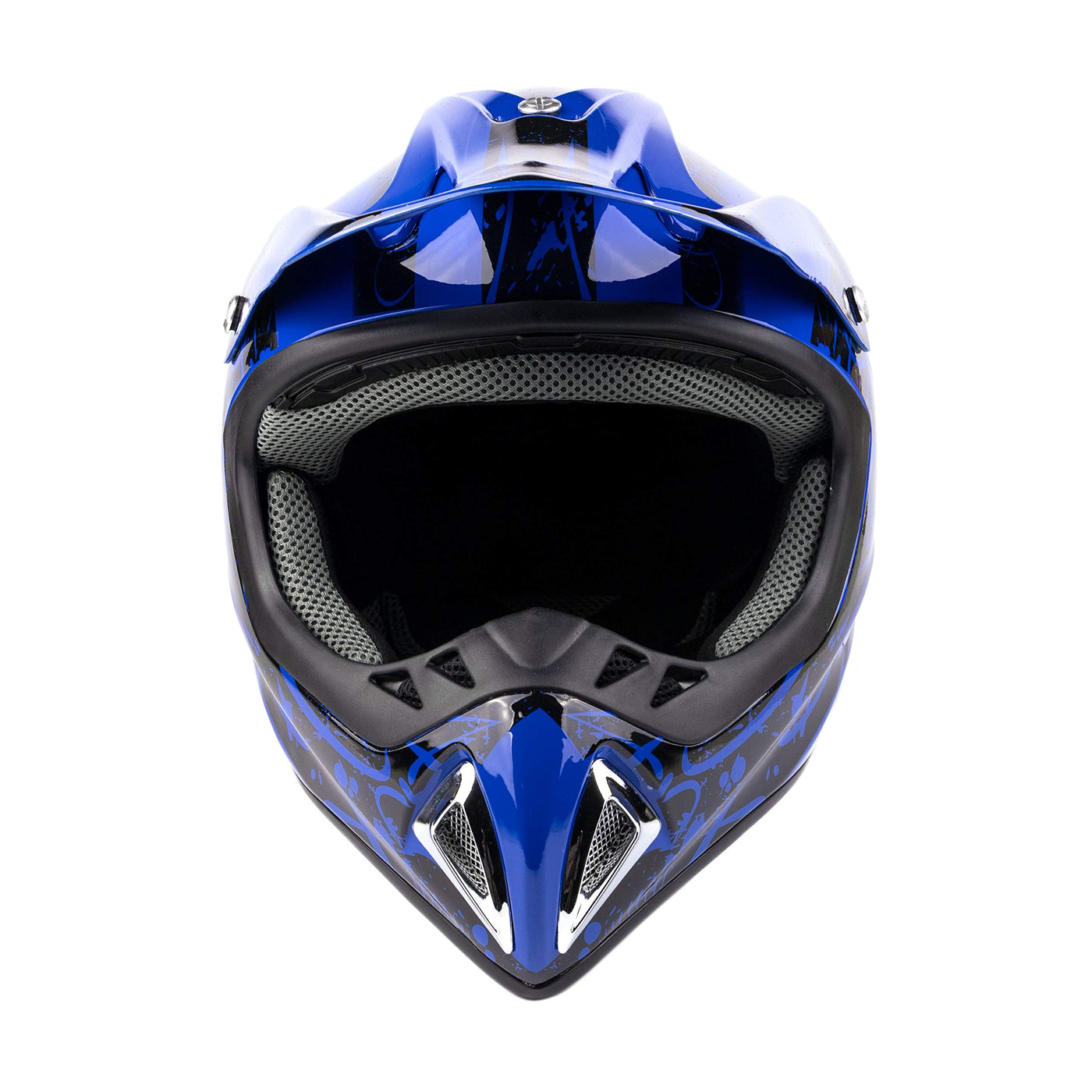 Typhoon Adult Atv Mx Helmet Goggles Gloves Gear Combo Black Blue ( Small )