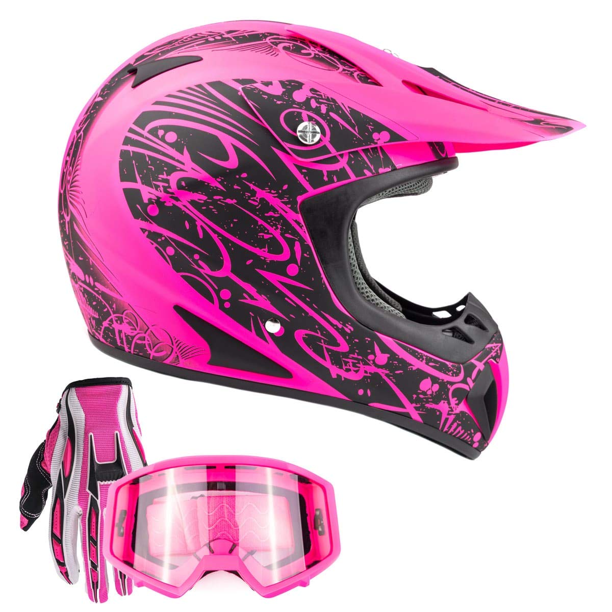 Typhoon Adult Women'S Dirt Bike Atv Helmet Motocross Goggles And Gloves Combo - Matte Pink With Pink ( Large )