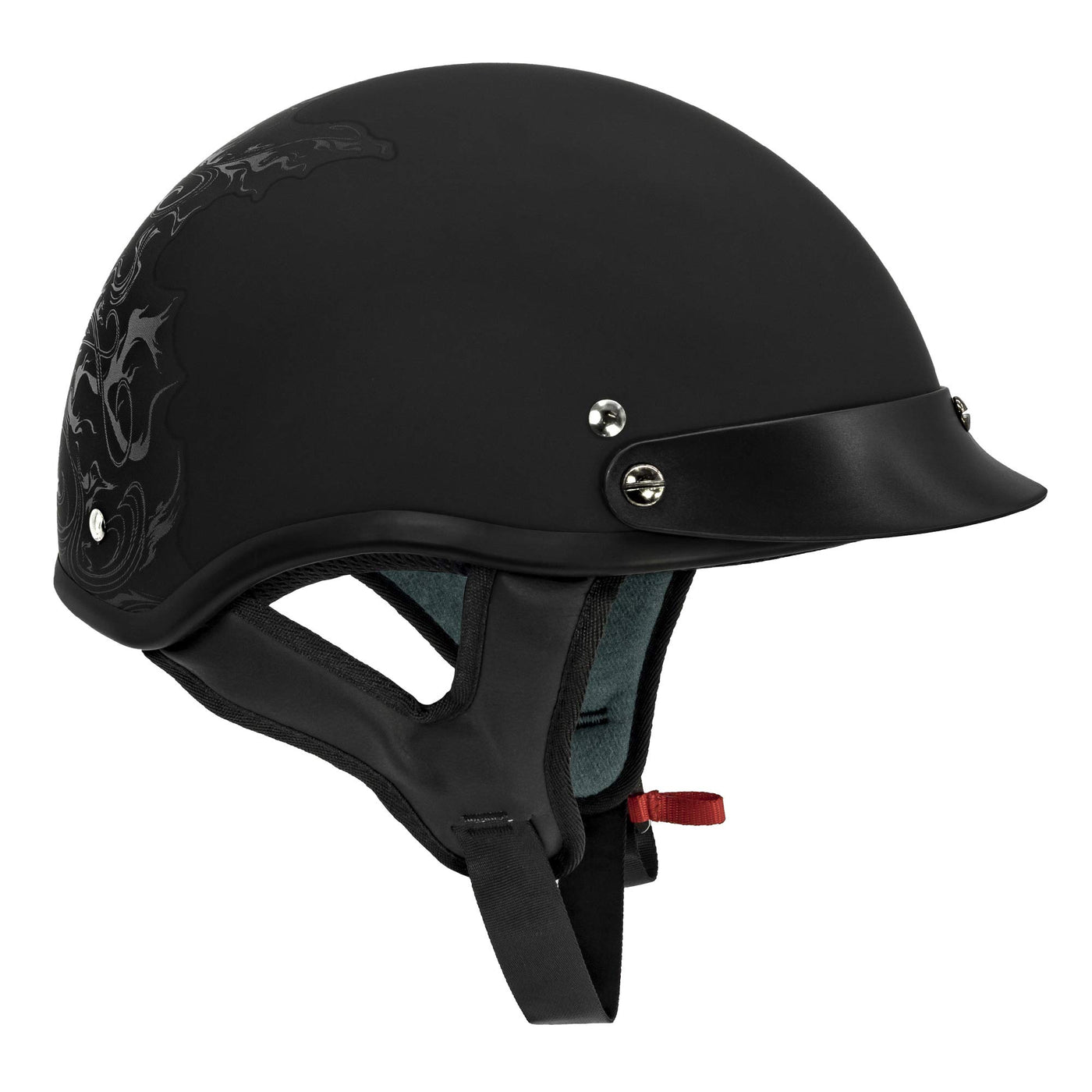 Solid Cruiser Half Helmet offers a combination of style, safety and comfortable off road experience. This skid lid is created with a top quality ABS thermoplastic resin shell that meets DOT standards. The lush interior padding provides top of the line comfort, while the double D ring secured adjustable nylon chin strap provides one of the best fits on the market today.