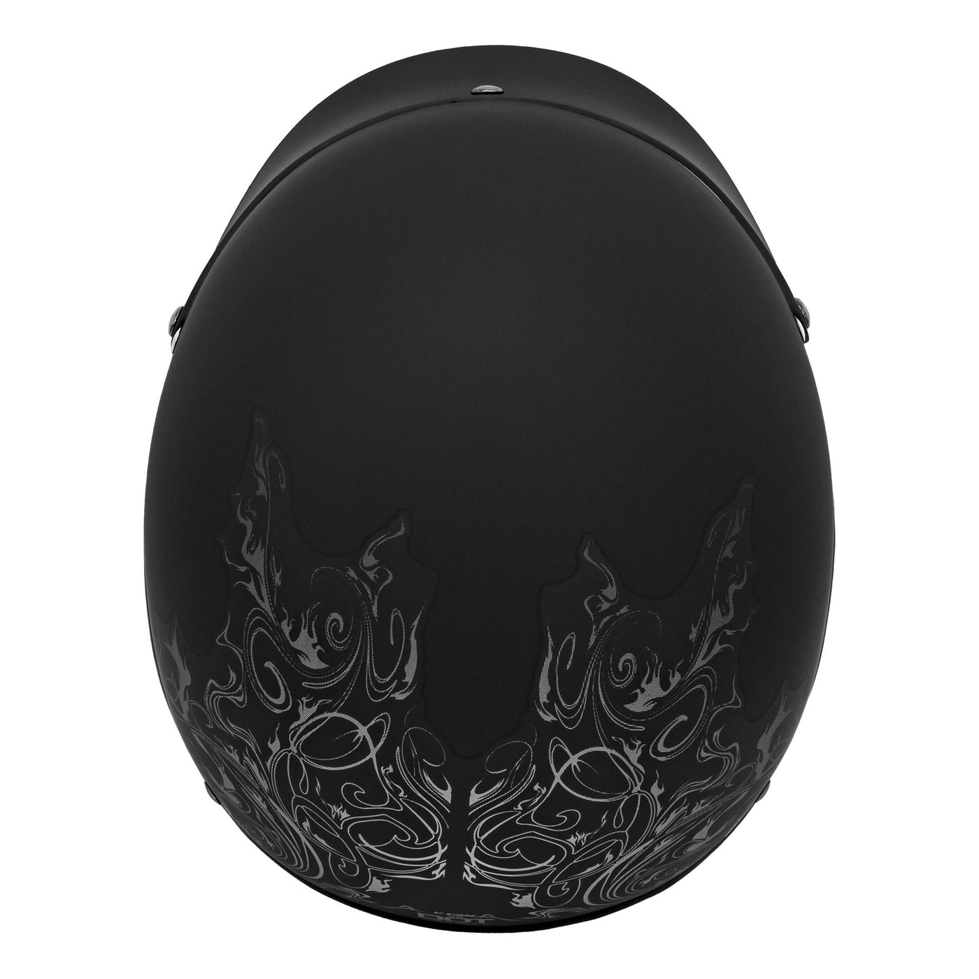 VCAN Cruiser Solid Flat Black Half Face Motorcycle Helmet (Scramble Line, X-Large)
