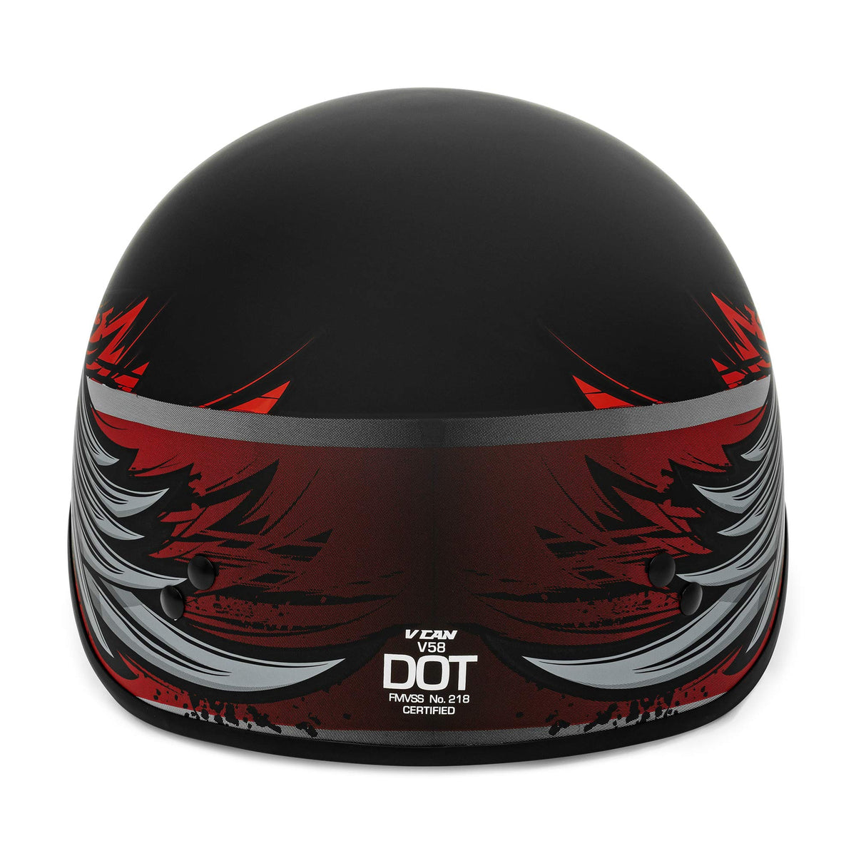 Vcan Cruiser Solid Flat Black Half Face Motorcycle Helmet With Drop-Down Sun Visor, Removable Peak And Quick Release Buckle (Pho