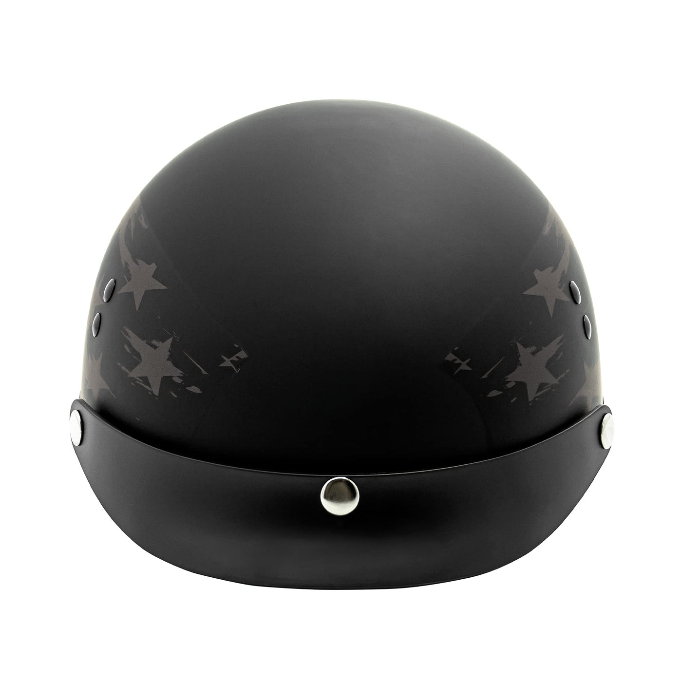 VCAN Cruiser Solid Flat Black Half Face Motorcycle Helmet with Drop-Down Sun Visor, Removable Peak and Quick Release Buckle (Sta