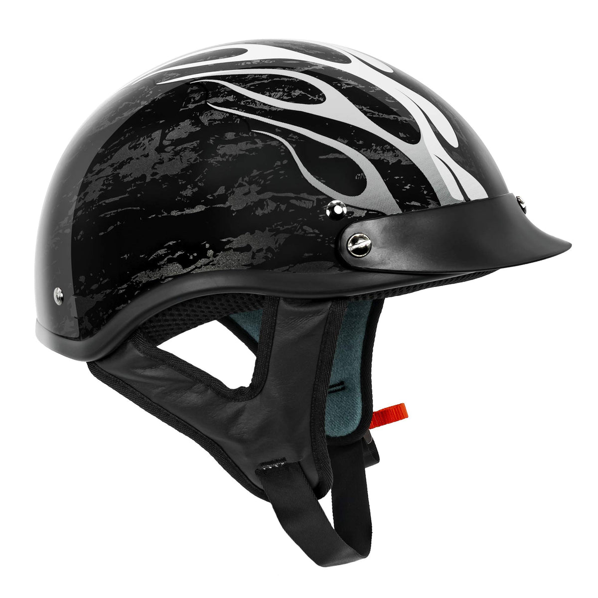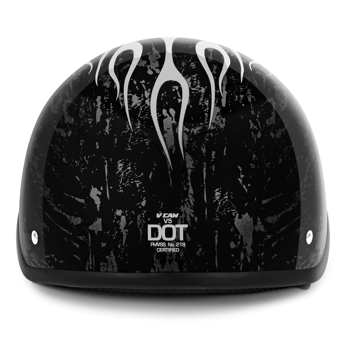 VCAN Cruiser Solid Gloss Black Half Face Motorcycle Helmet (Fire, XX-Large)