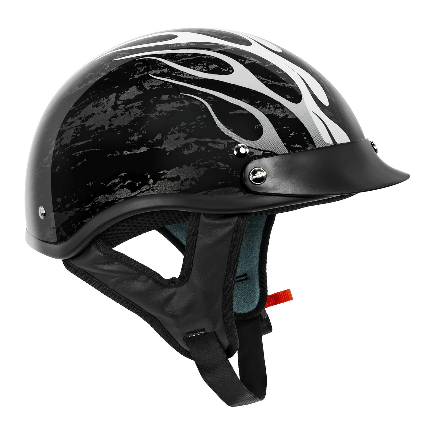 Solid Cruiser Half Helmet offers a combination of style, safety and comfortable off road experience. This skid lid is created with a top quality ABS thermoplastic resin shell that meets DOT standards. The lush interior padding provides top of the line comfort, while the double D ring secured adjustable nylon chin strap provides one of the best fits on the market today.
