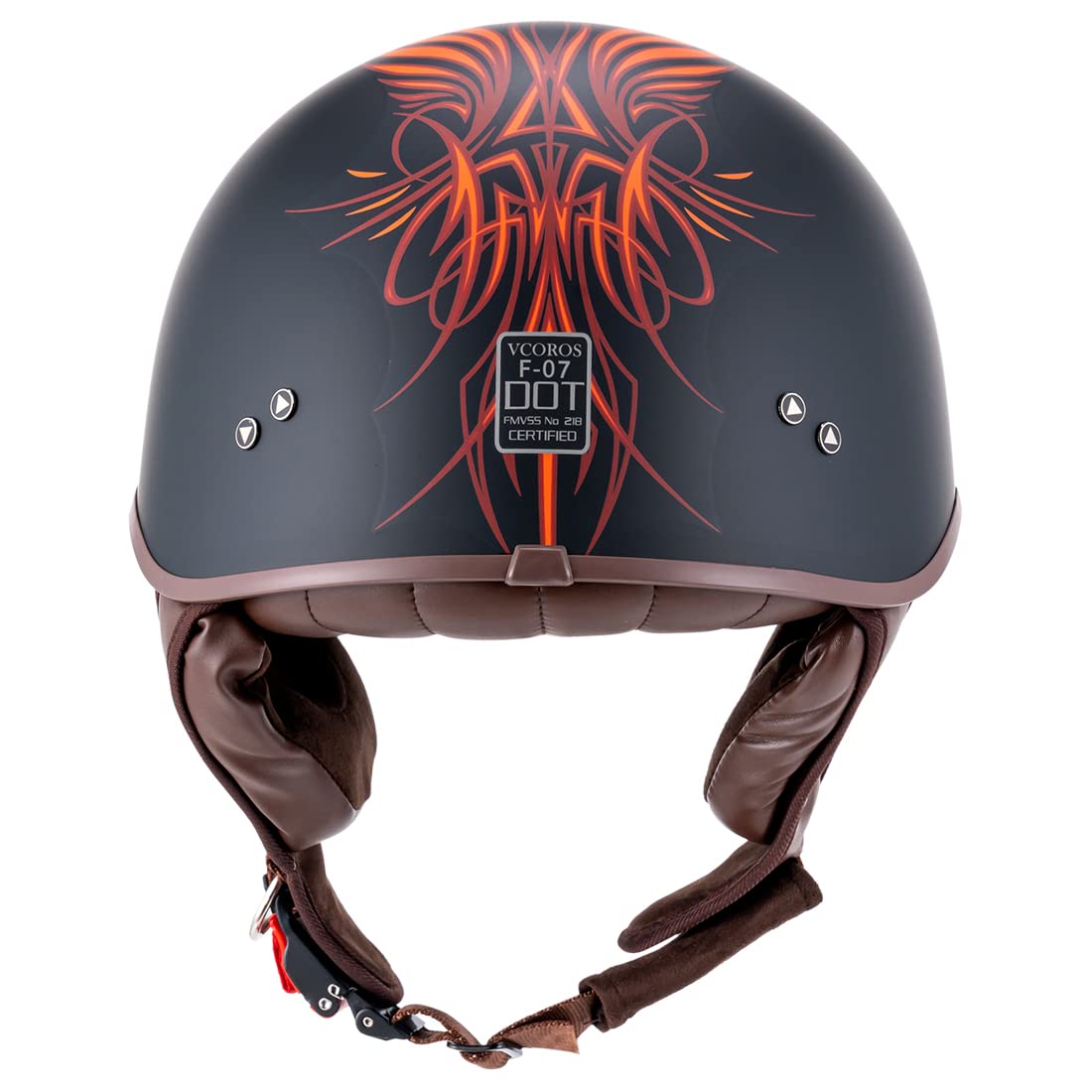 Q: What safety certifications does the VCOROS F-07 Motorcycle Half Face Helmet have?A: The VCOROS F-07 Motorcycle Half Face Helmet is DOT FMVSS N218 approved, ensuring it meets safety standards for motorcycle riding and other outdoor sports.