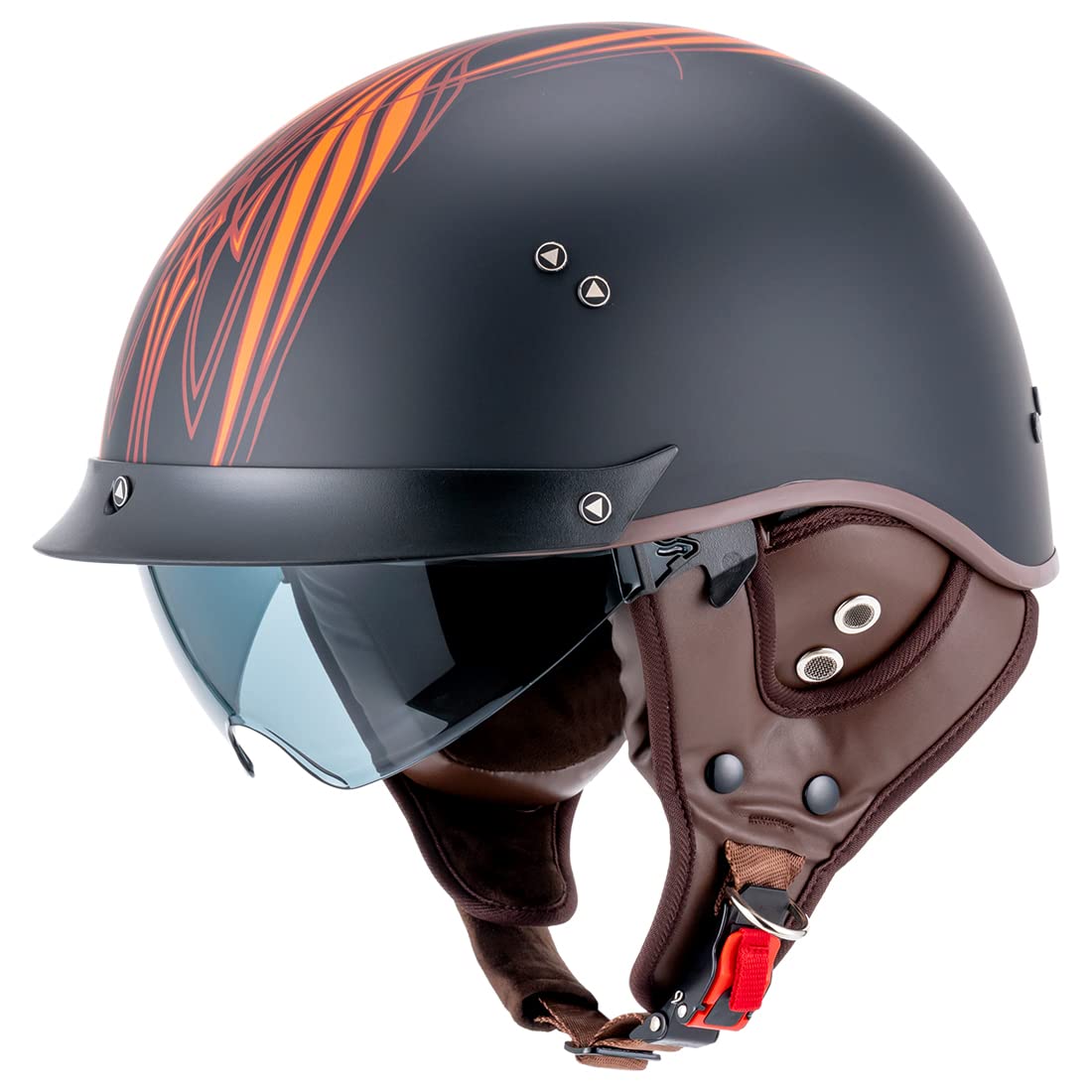 VCOROS F-07 Motorcycle Half Face Helmet Sun Visor Quick Release Buckle DOT Approved Adult Helmets for Men Women (Angel,L