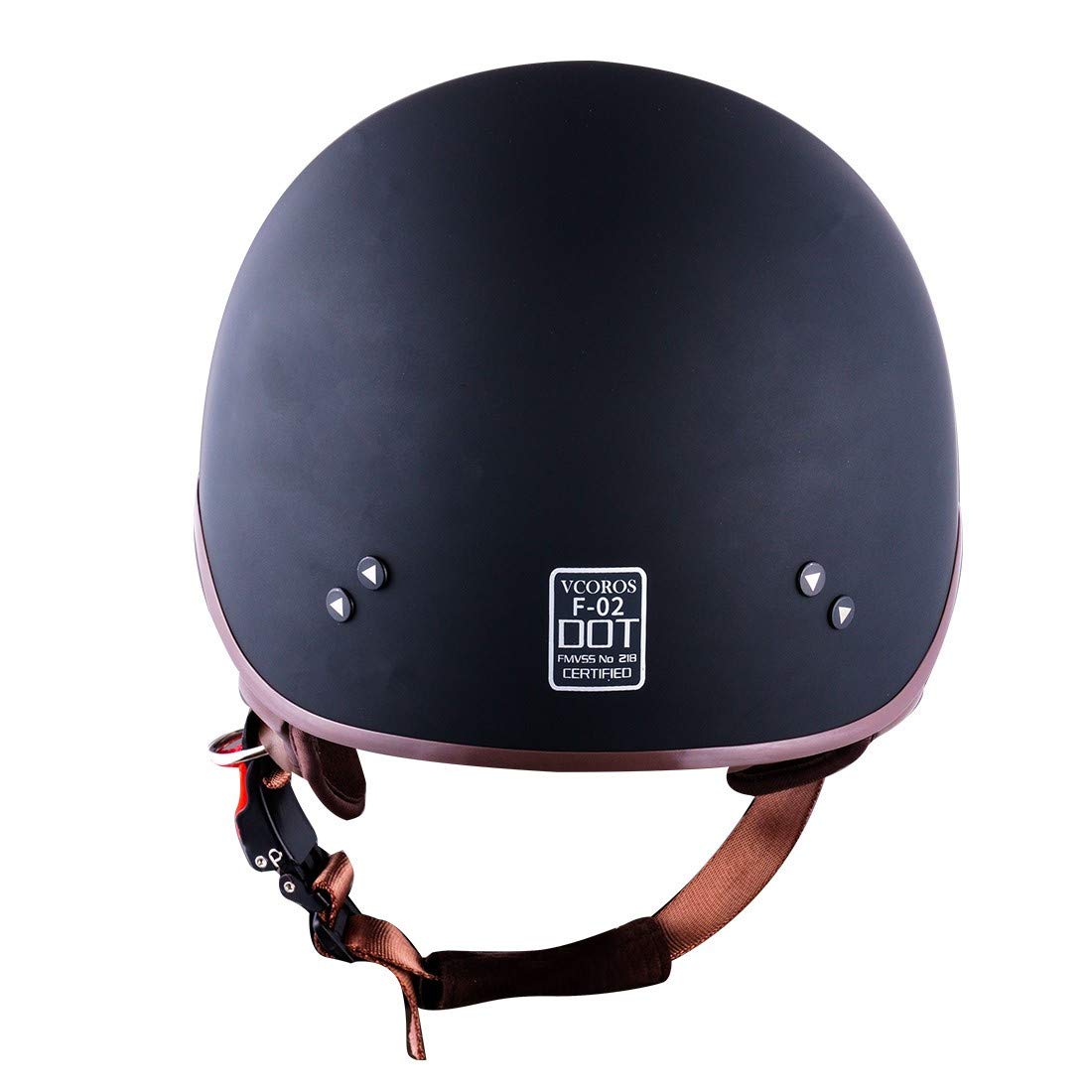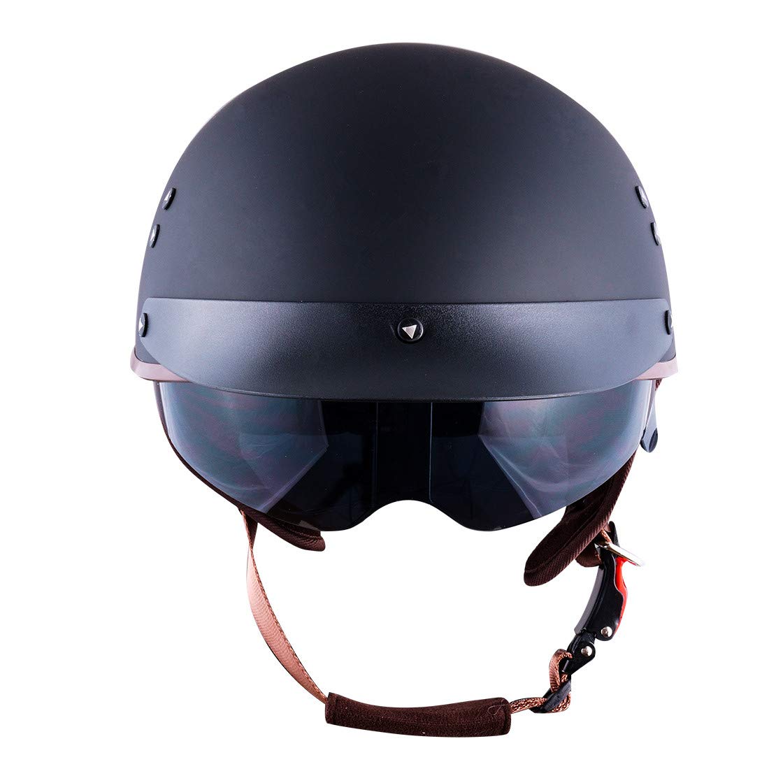 VCOROS Motorcycle Half Face Helmet Sun Visor Quick Release Buckle DOT Approved Man Women Helmets for Motorbike Cruiser Chopper Moped Scooter ATV (Matte Black, XL)