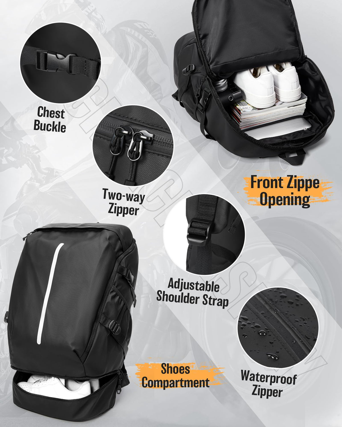 WEPLAN Motorcycle Backpacks for Men and women, Waterproof Motorcycle Backpack, Helmet Bag Bookbag for riding, Outing