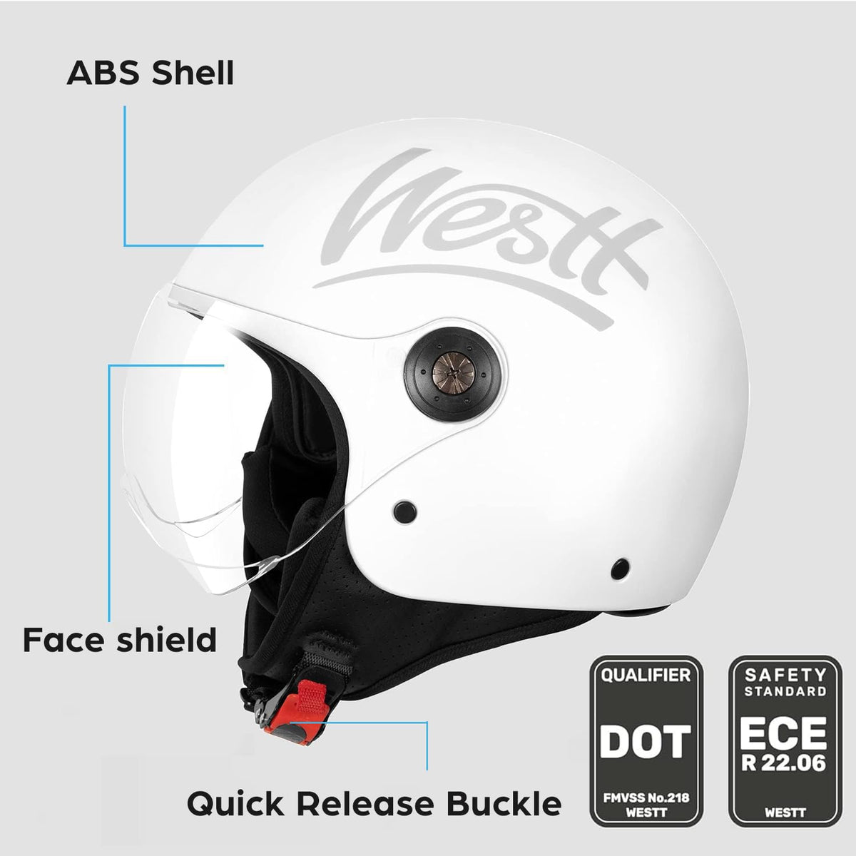 Westt Open Face Motorcycle Helmet For Adults, Dot Approved, Retro Motorcycle Helmet For Men Women, With Visor, Quick Release (Cl